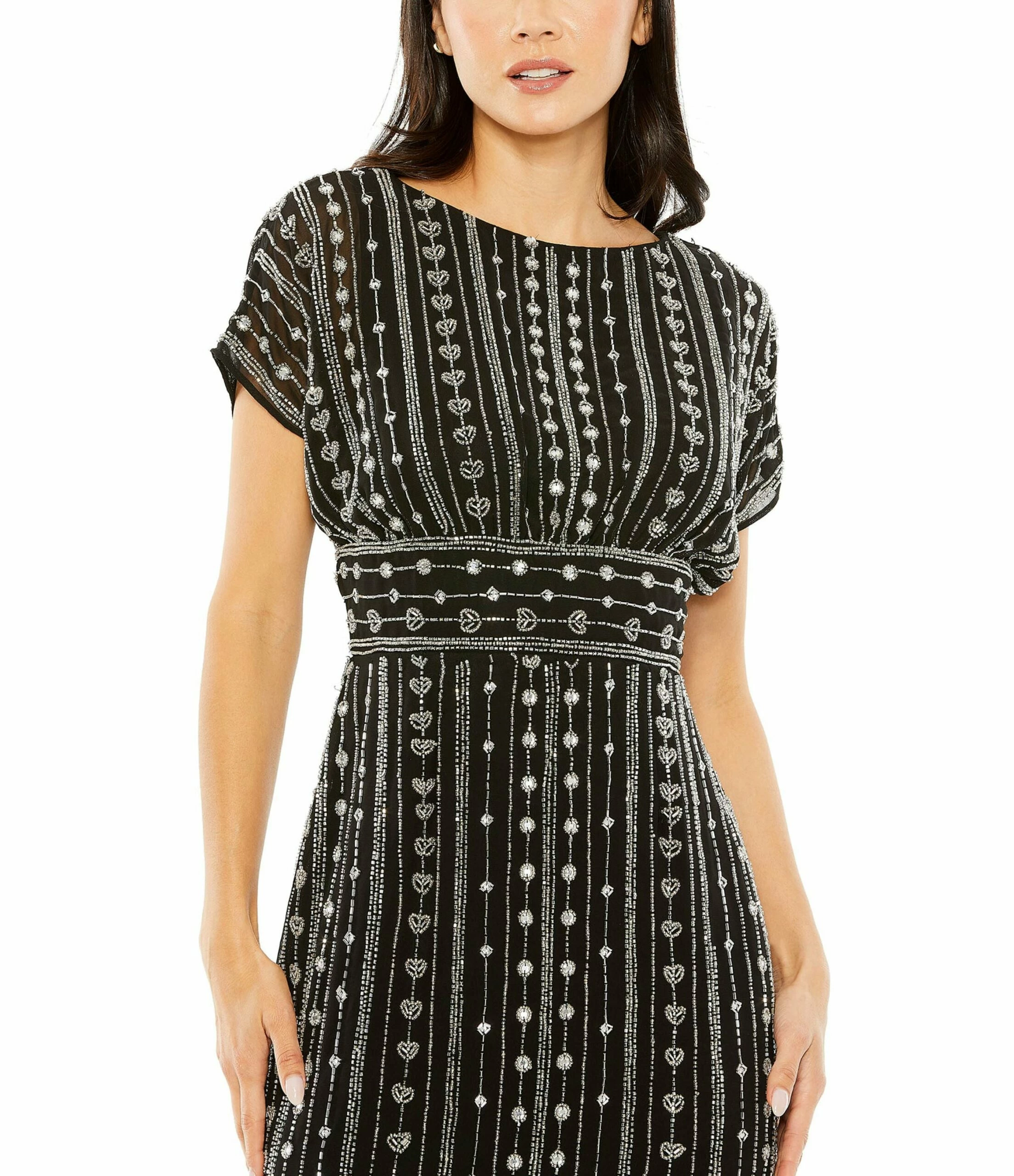 Beaded Cap Sleeve Column Midi Dress