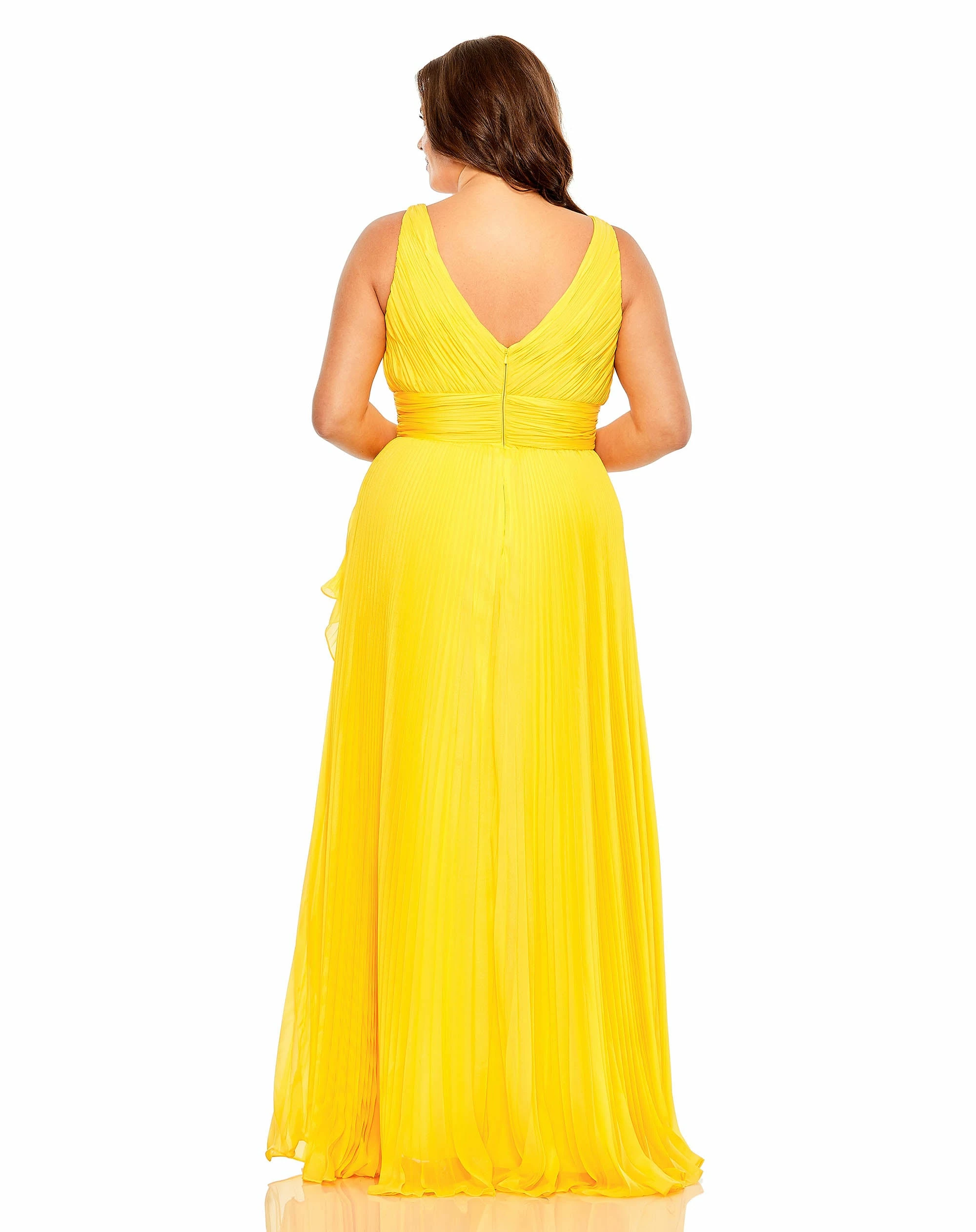Chiffon Pleated V-Neck Ruffle Gown (Plus)