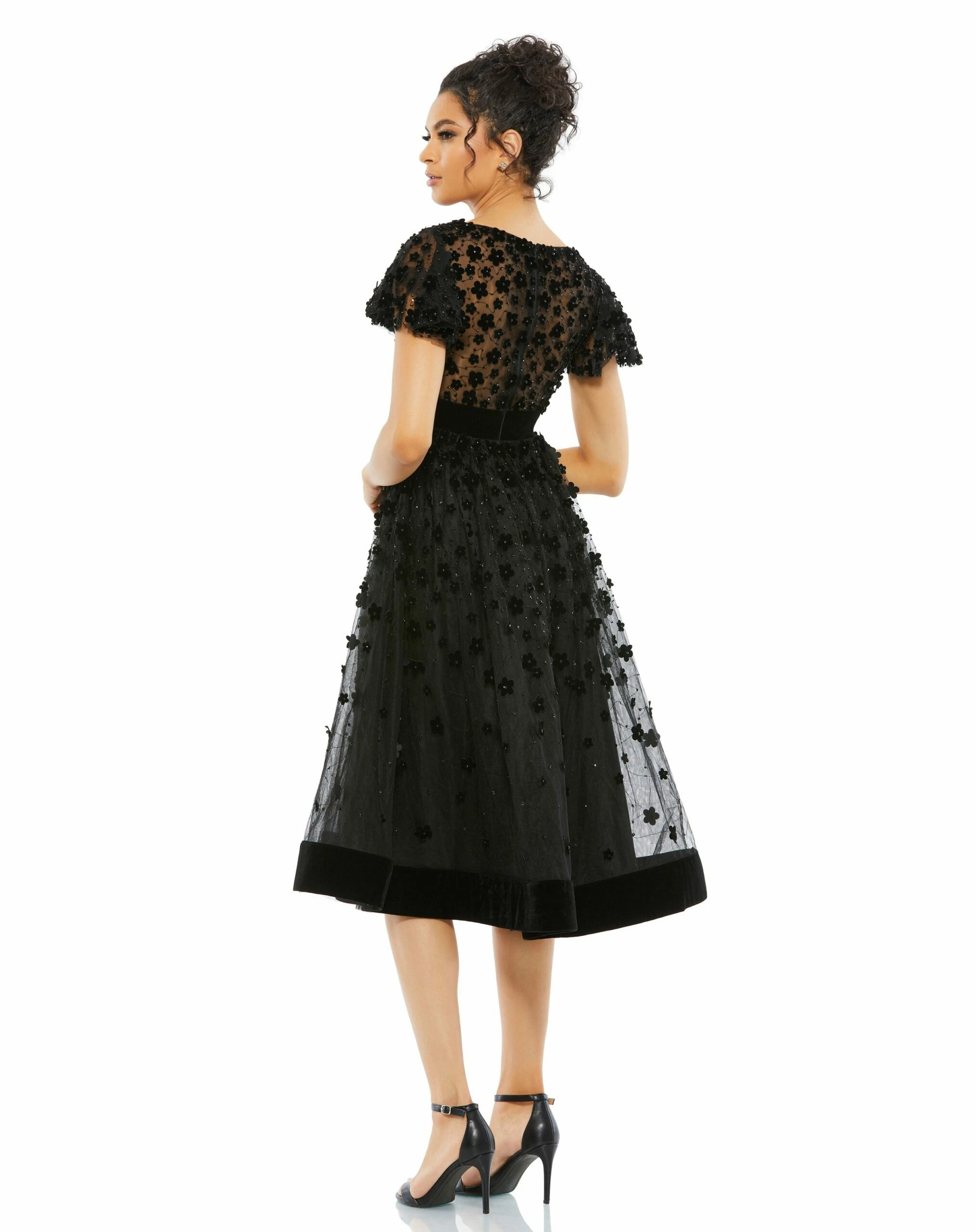 - All-over floral appliqué and beaded embellishments
