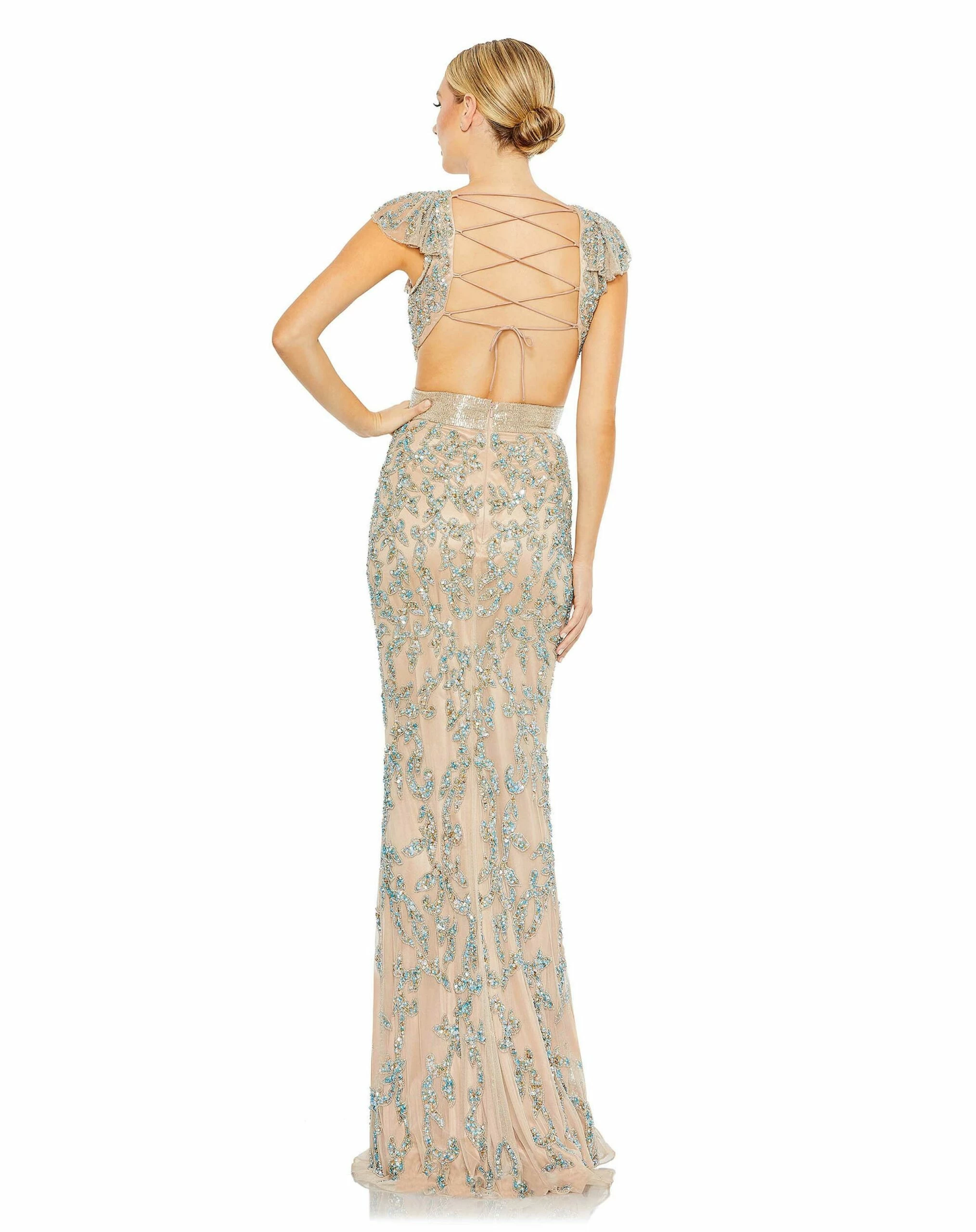 Embellished Cut Out Lace Up Cap Sleeve Gown