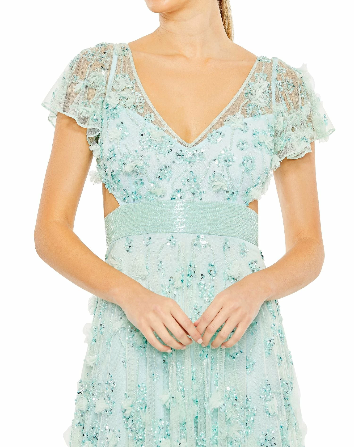 SKU: BWFJZ 7369861005491 Category: Evening Gowns Tags: Beaded, Bridal, Cut Out, Cut-Outs, Flutter Sleeve, Flutter Sleeves, Lace Up, Maxi & Floor Length, Open Back, PAS, Price 501-700, PROM23, V-Neck