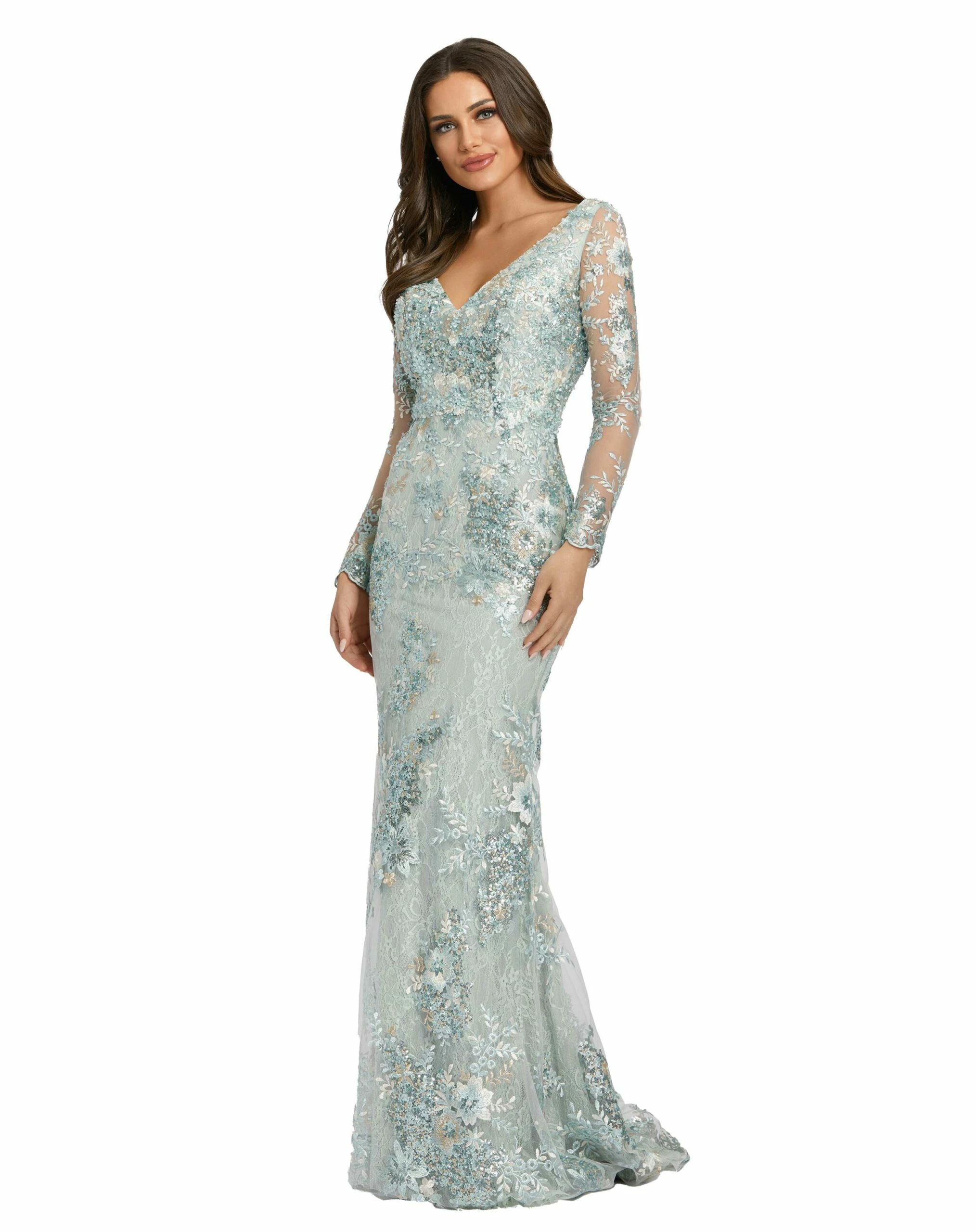 Be the first to review “Embellished V Neck Illusion Long Sleeve Gown” Cancel reply