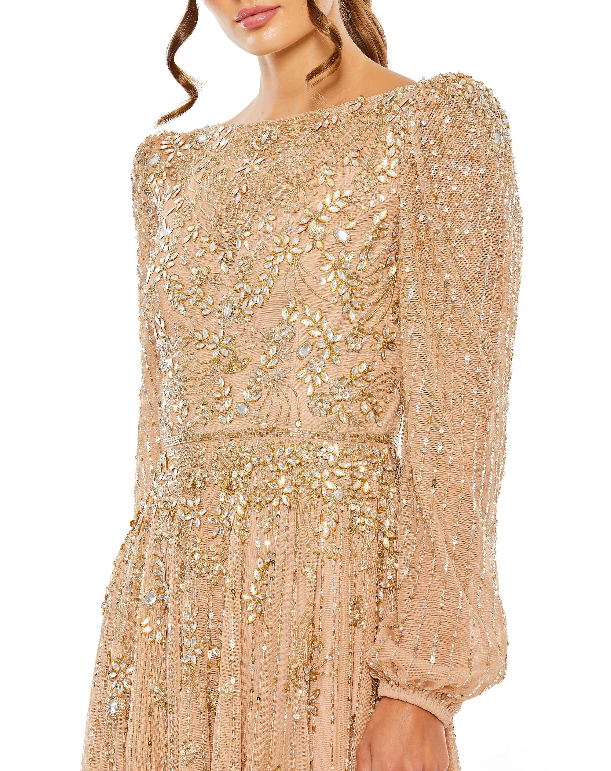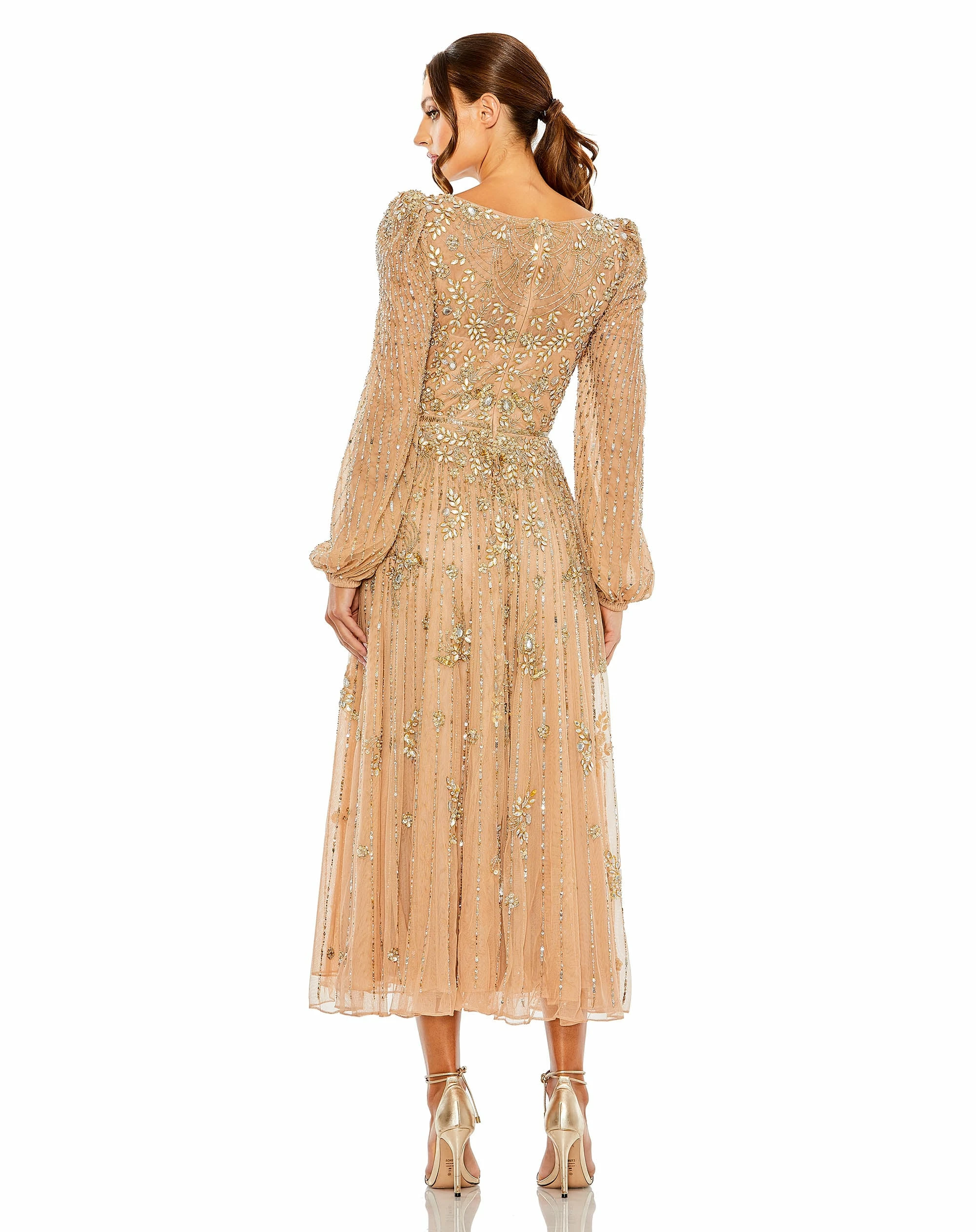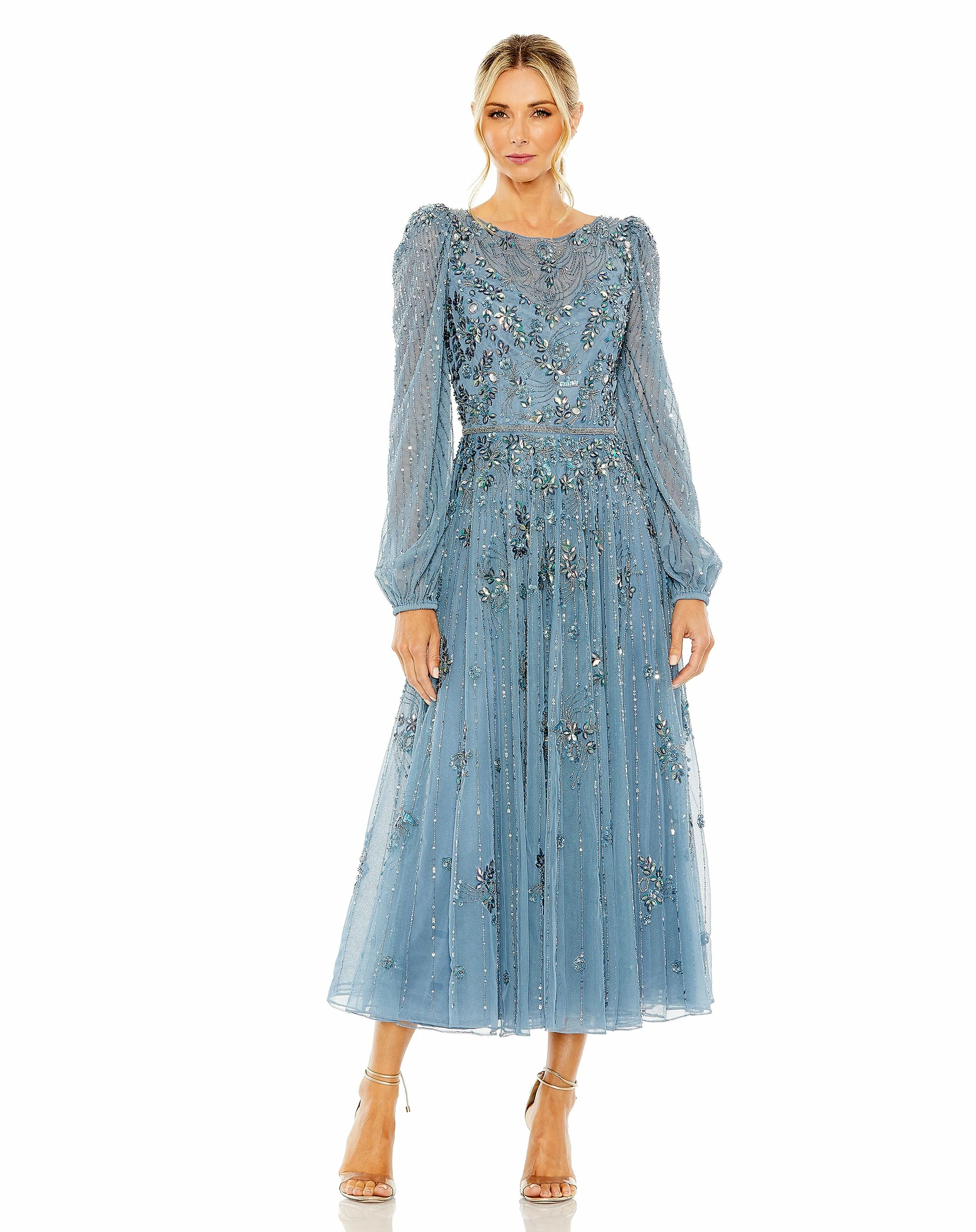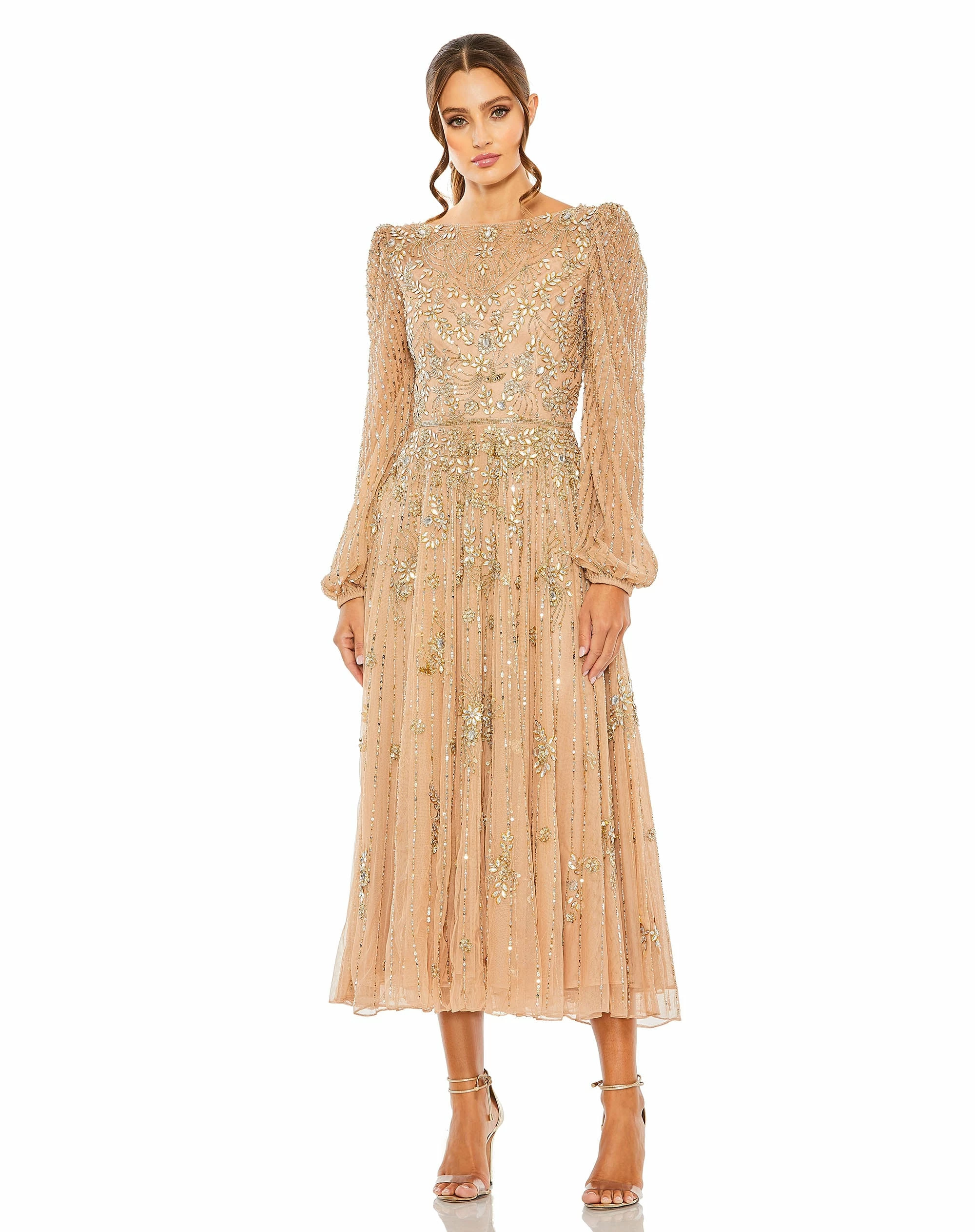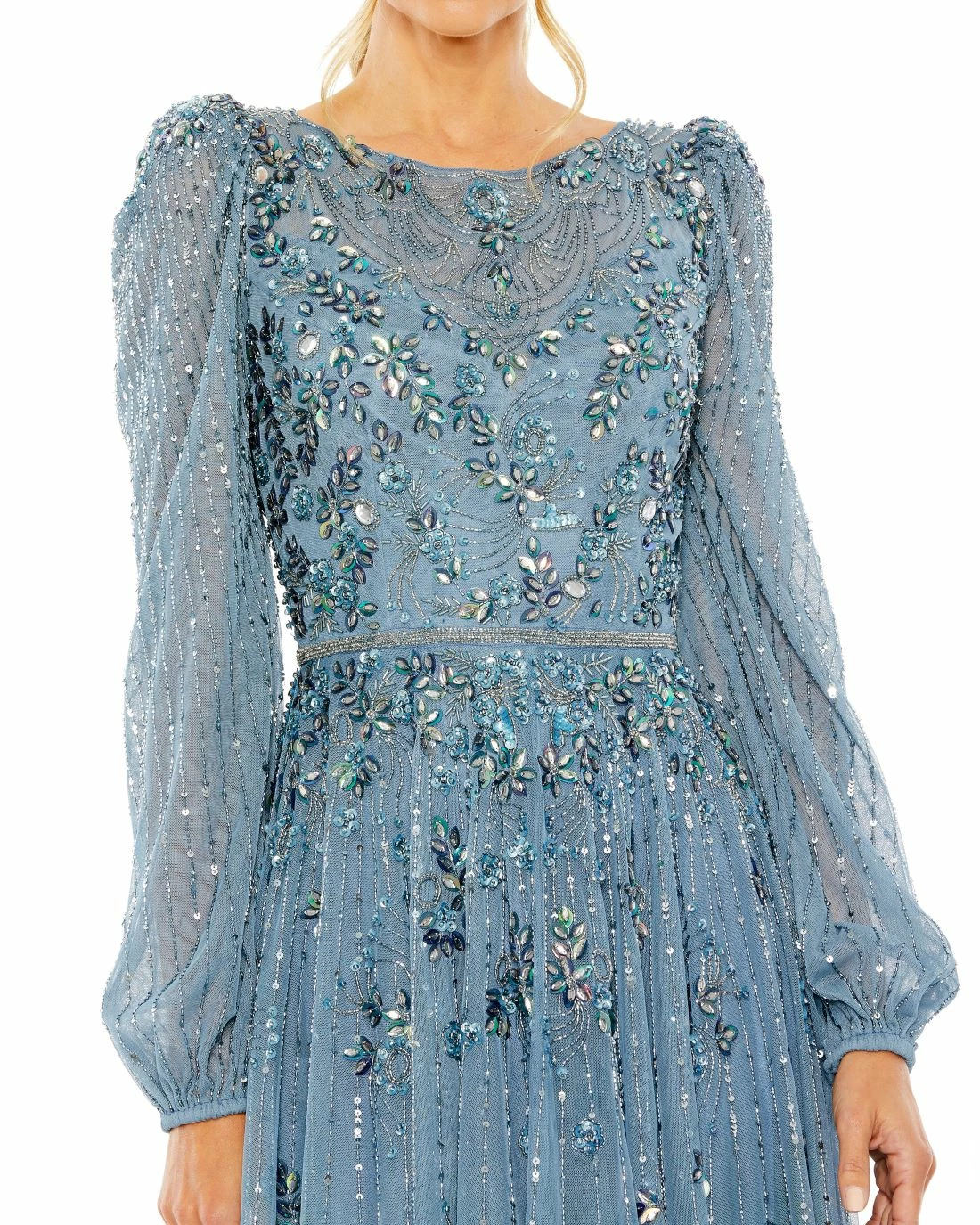 SKU: BWFJZ 7453483827379 Category: Cocktail Dresses Tags: Beaded, Cocktail, Cocktail Length, Embellished, Floral, High Neck, High Neckline, Jewels, Long Sleeve, Long Sleeves, Midi, Midi & Tea Length, Modest, Mother of the Bride, Price 501-700, Puff Sleeve, Sequin, Sequined, Sequins