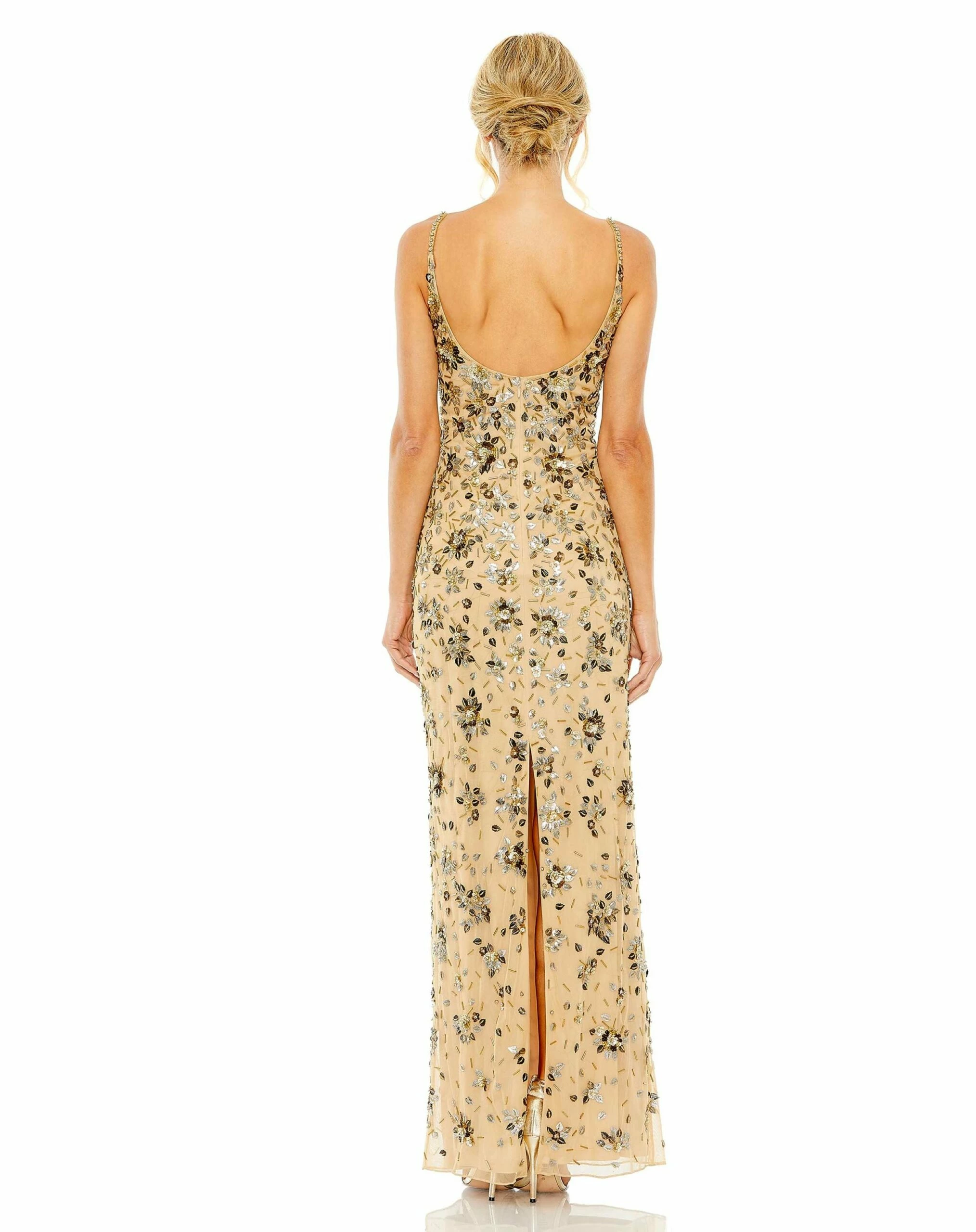 - Floral hand-stitched sequins and beaded embellishmentsÂ