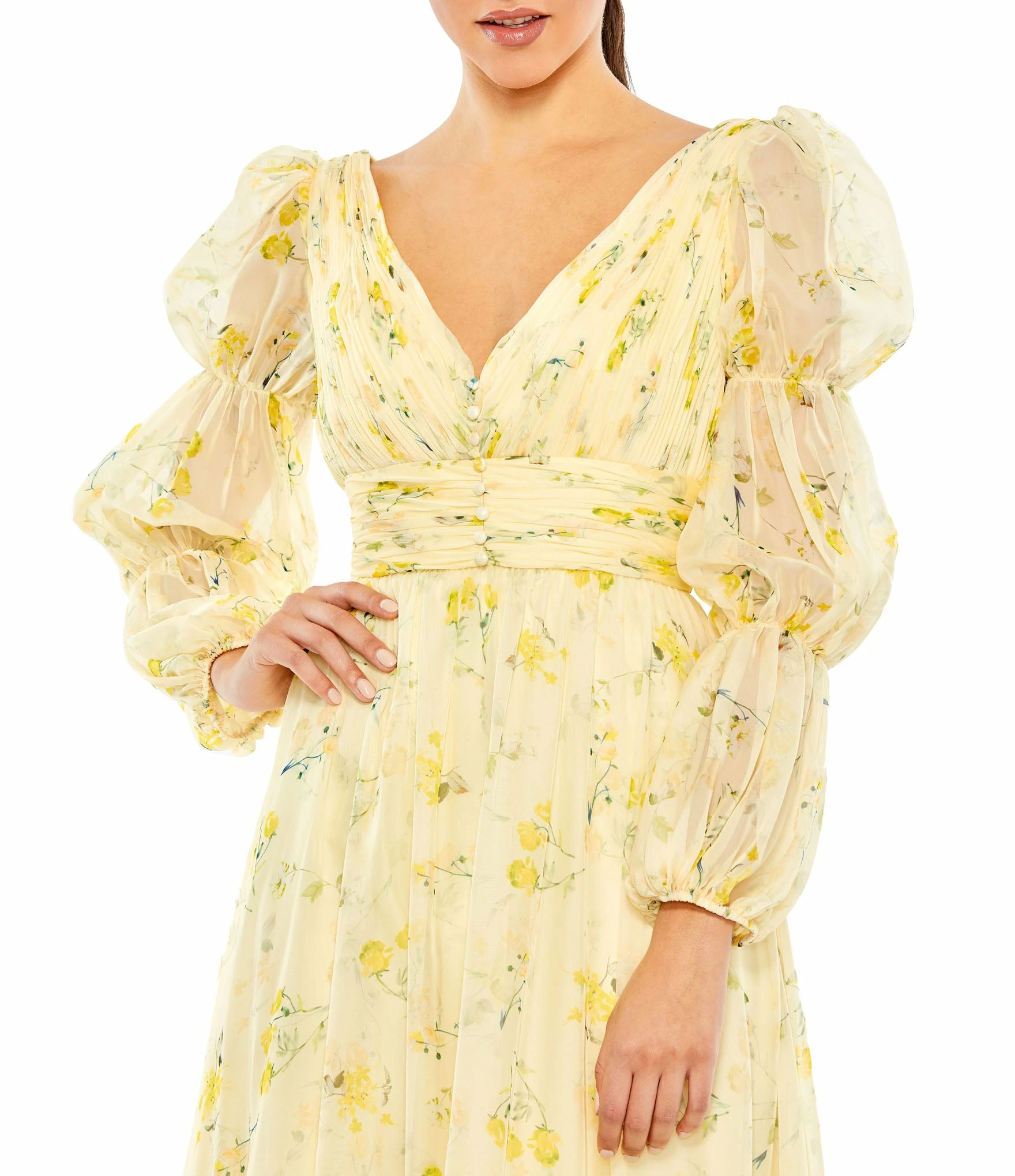 Floral Print Chiffon Illusion Tiered Puff Dress