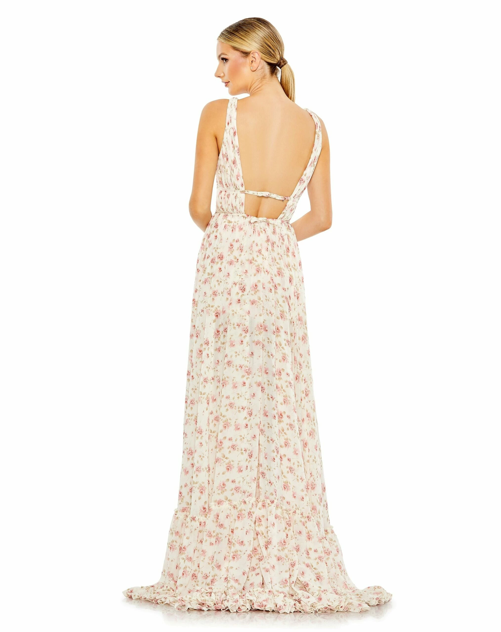 Be the first to review “Floral Print Sleeveless Ruffled High-Low Gown” Cancel reply