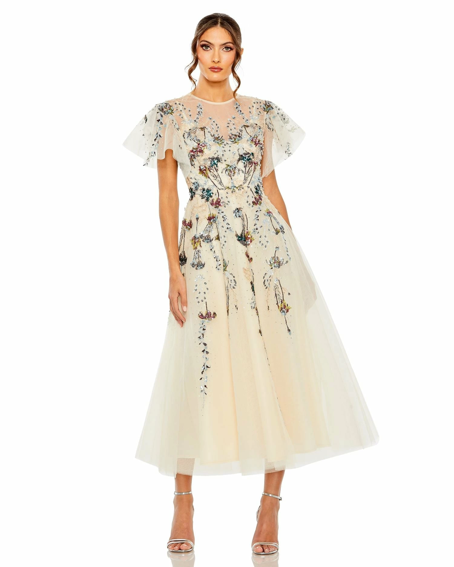 SKU: BWFJZ 7451843330227 Category: Cocktail Dresses Tags: Beaded, Cocktail, Cocktail Length, Embellished, Floral, Flutter Sleeve, Flutter Sleeves, High Neck, High Neckline, Illusion Neckline, Midi, Midi & Tea Length, Price > 700, Sequin, Sequins, TULLE