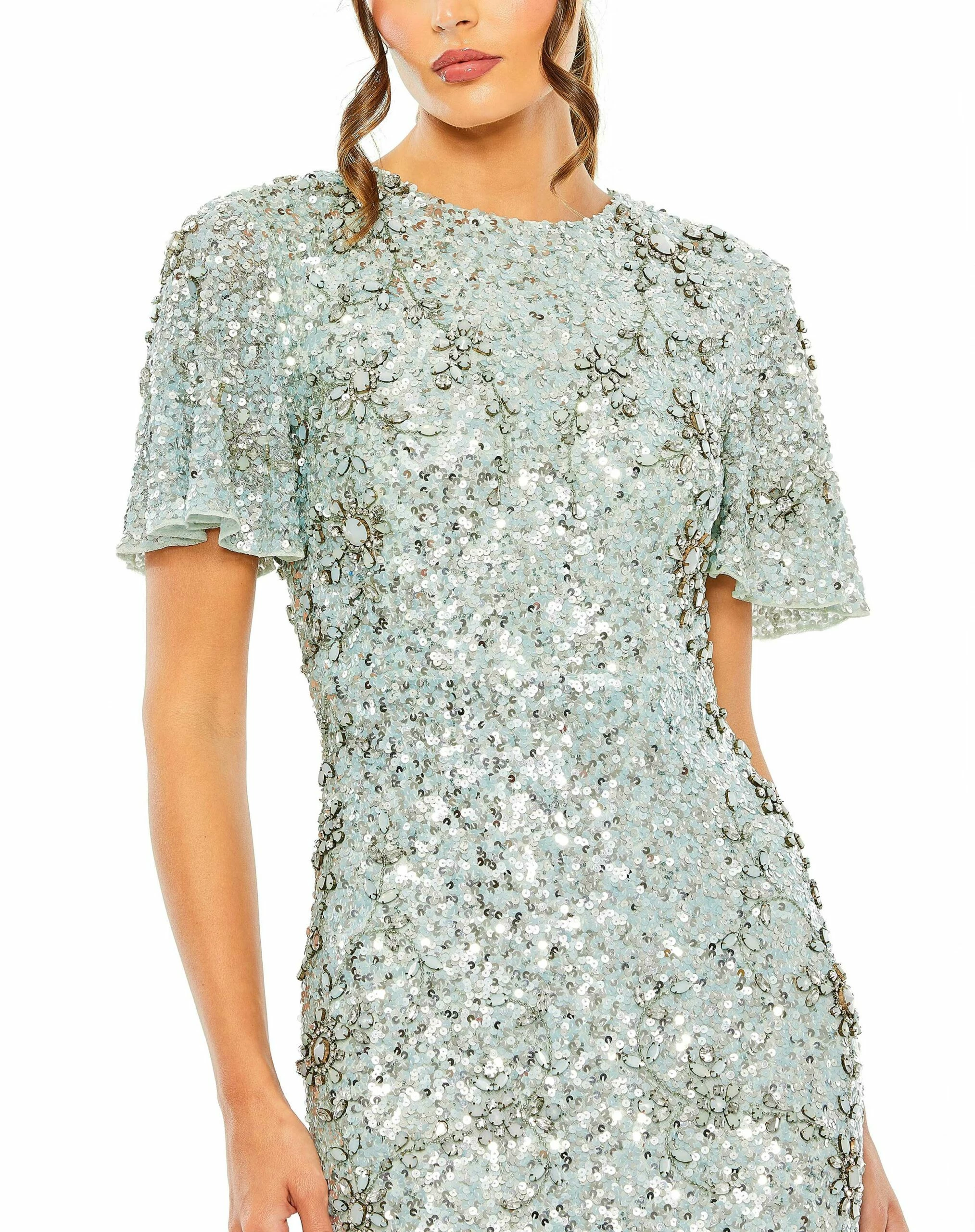 SKU: BWFJZ 7365663097011 Category: Evening Gowns Tags: Beaded, Embellished, Floral, Guest of the Wedding, High Neck, Maxi & Floor Length, Price > 700, Sequins, Short Sleeve, Special Occasion, Wedding Guest