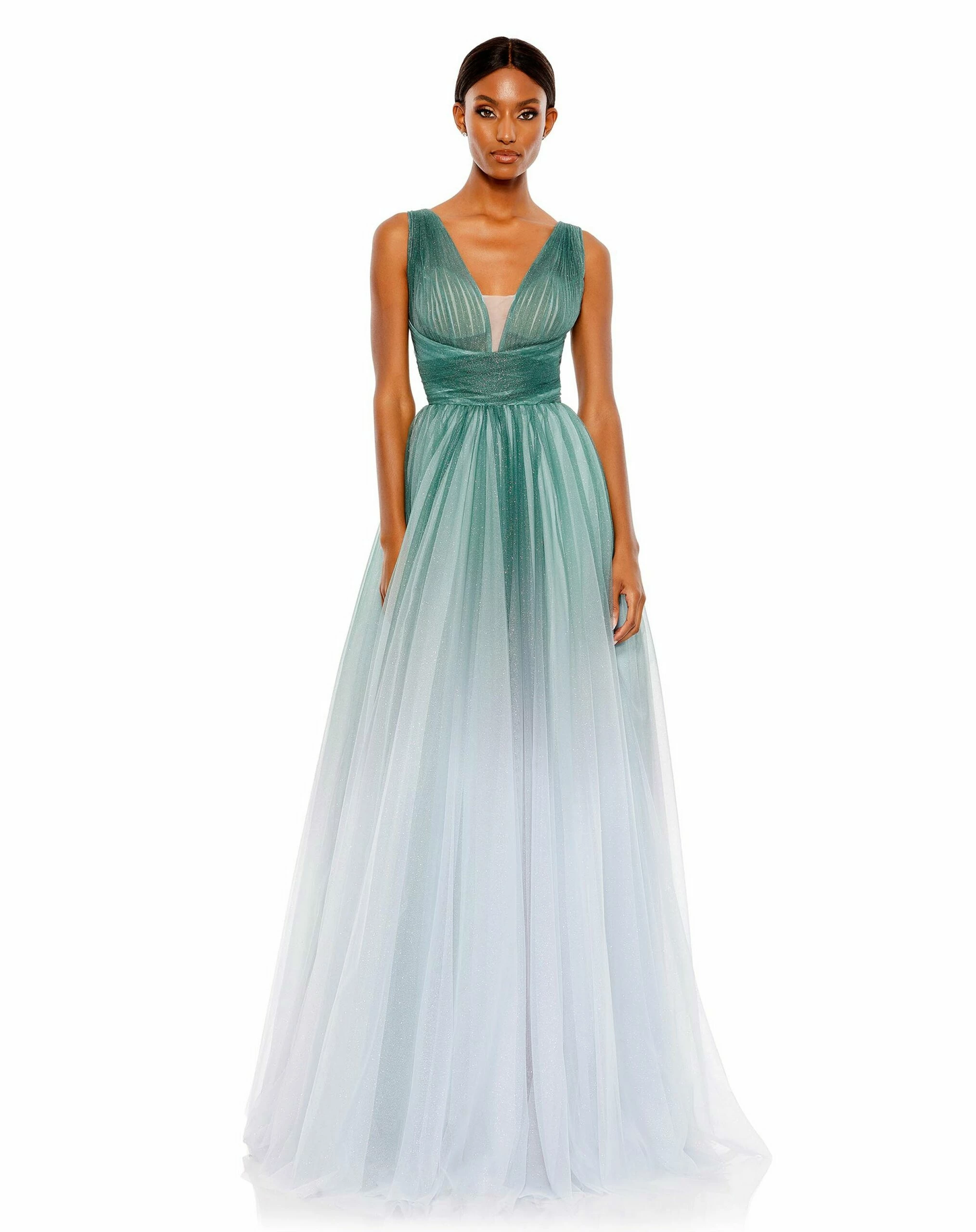 You’ll look shimmering and splendid in this sparkling evening dress crafted of glittery tulle. Cut in the ball gown silhouette you’ve dreamt of since forever, this prom gown looks amazing in person and in pictures. We love the wide, pleated straps, flattering wrapped waist, and poofy dip-dyed skirt.