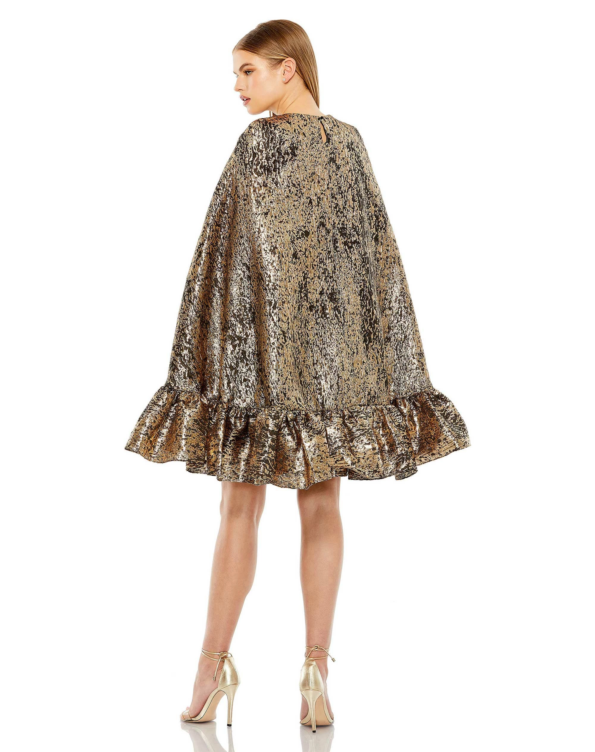 SKU: BWFJZ 7455173247155 Category: Cocktail Dresses Tags: Above The Knee, Brocade, Cape Sleeve, Cocktail, Fall cocktail, High Neck, High Neckline, Metallic, Mini, Price 401-500, Special Occasion, Trapeze