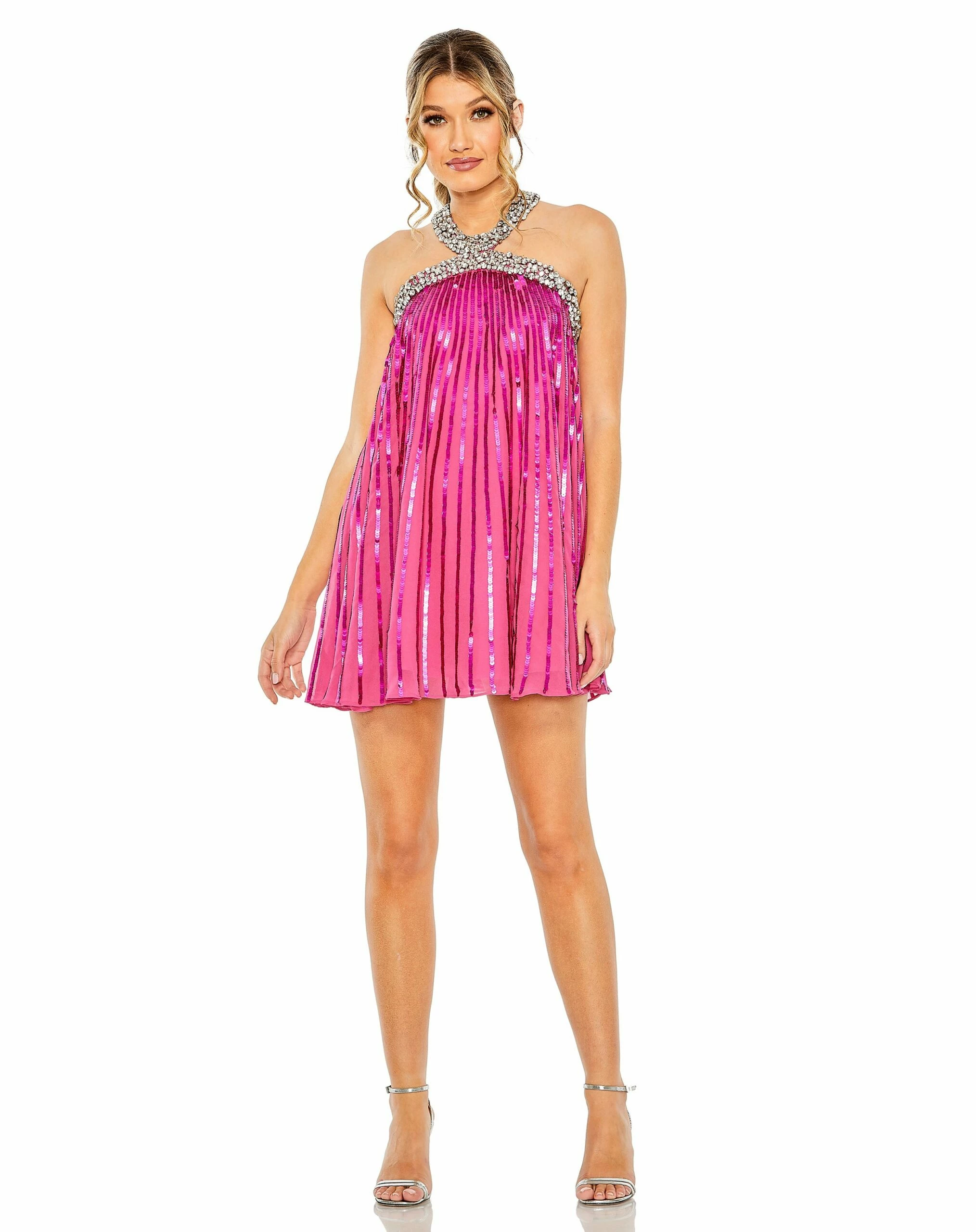 - Embellished Rhinestone Collar and Trim with Vertical Striped Sequins