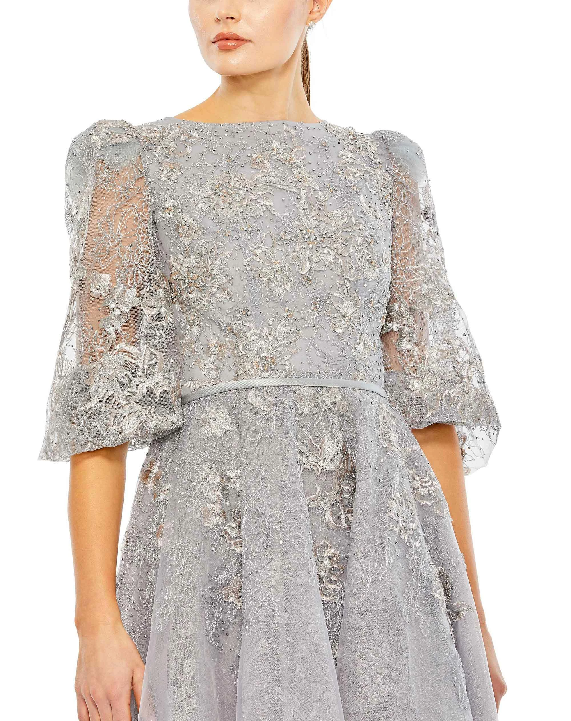 High Neck Puff Sleeve Embellished Gown