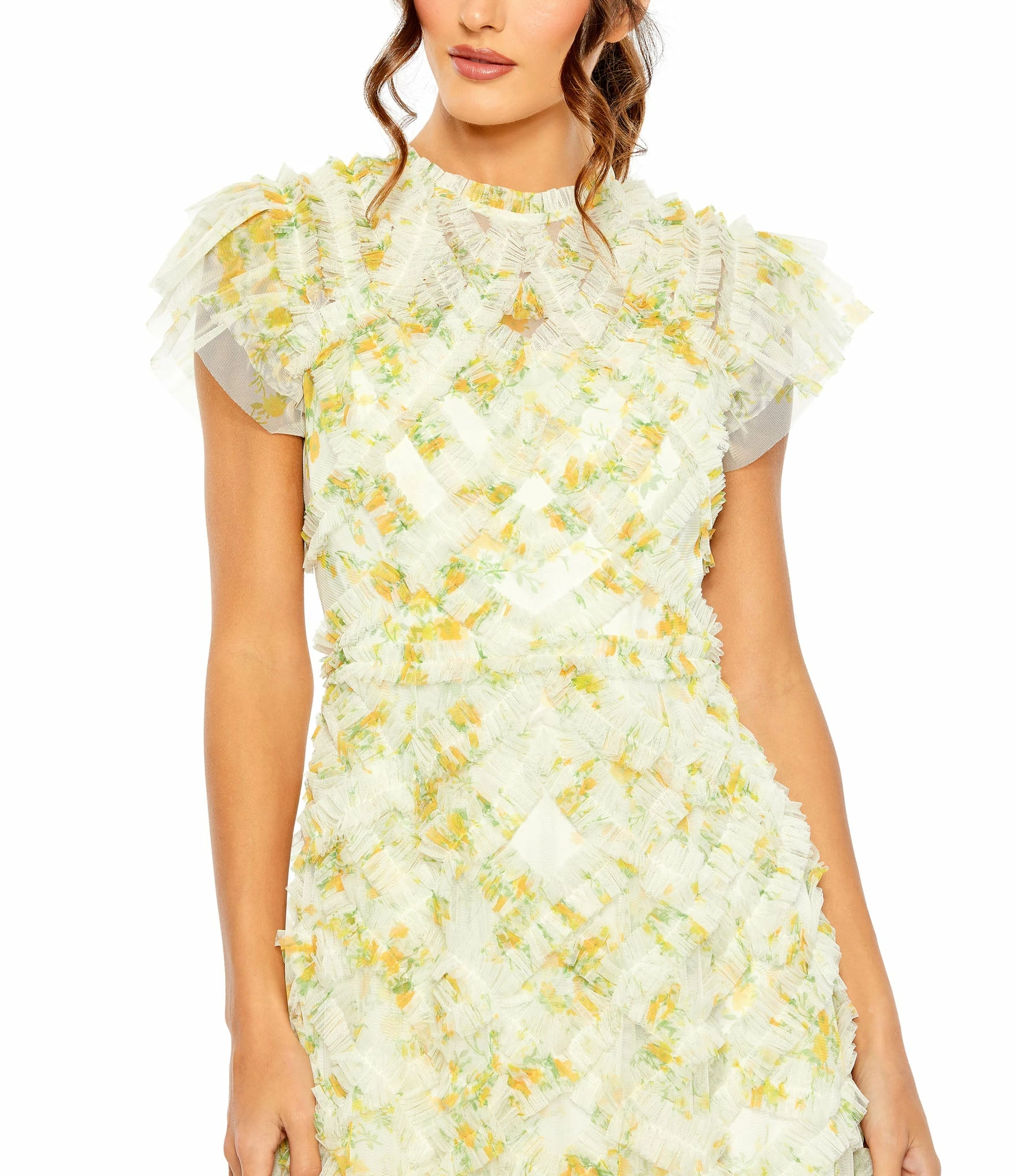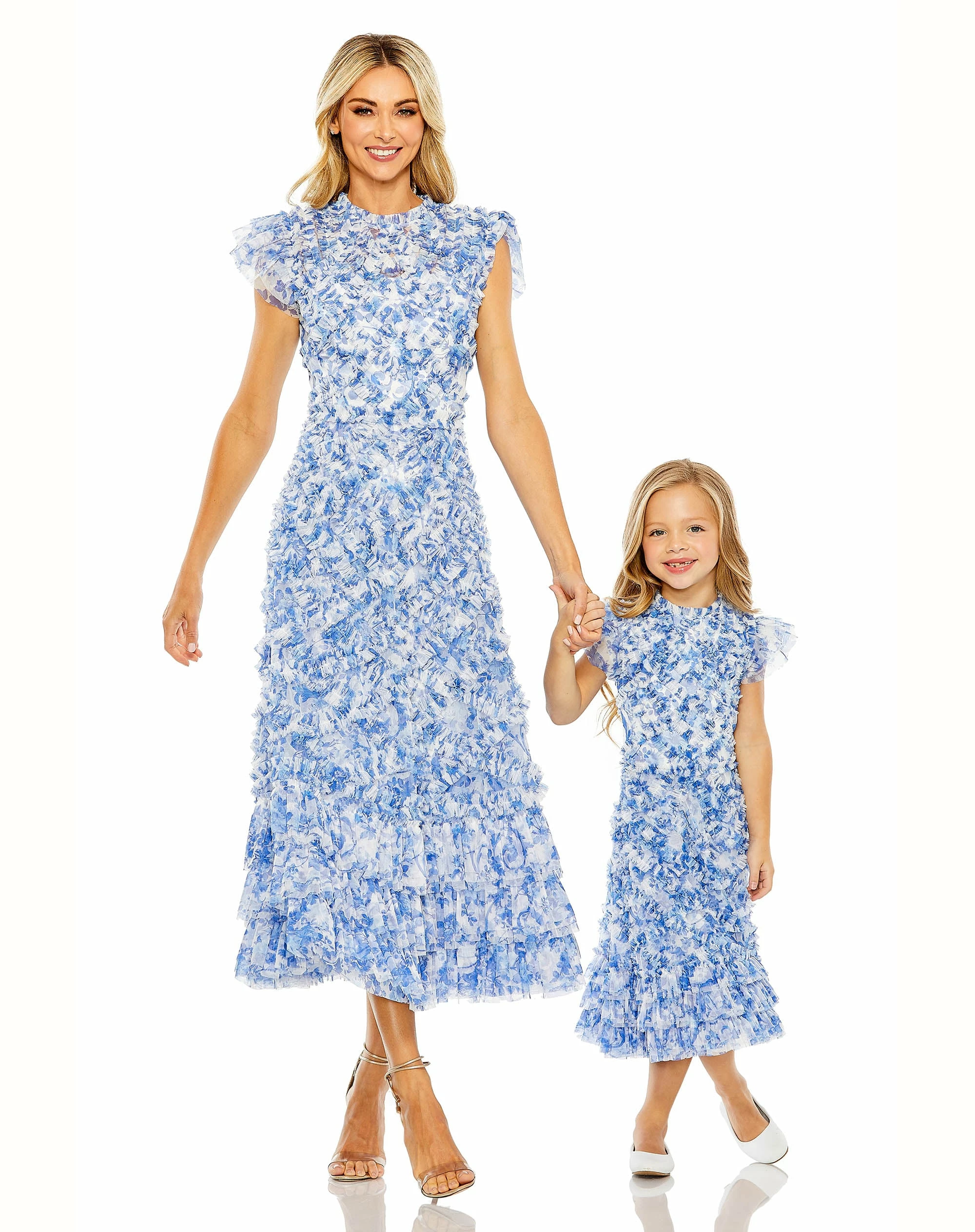 - Partially lined bodice; fully lined through skirt; sheer unlined sleeves