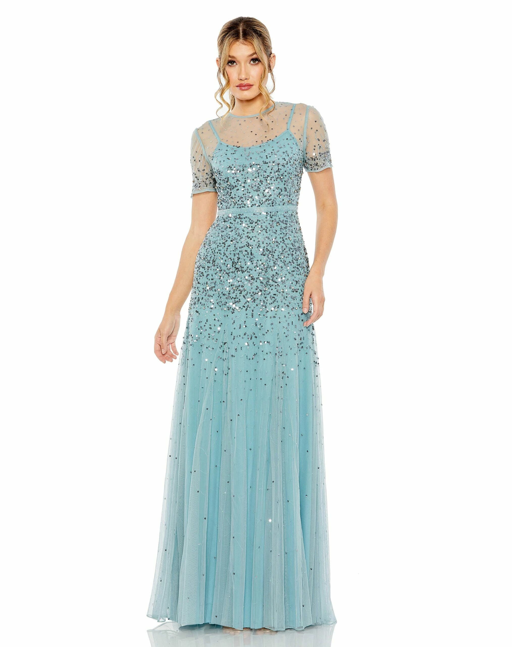 Be the first to review “High Neck Short Sleeve Sequin Embellished Gown” Cancel reply