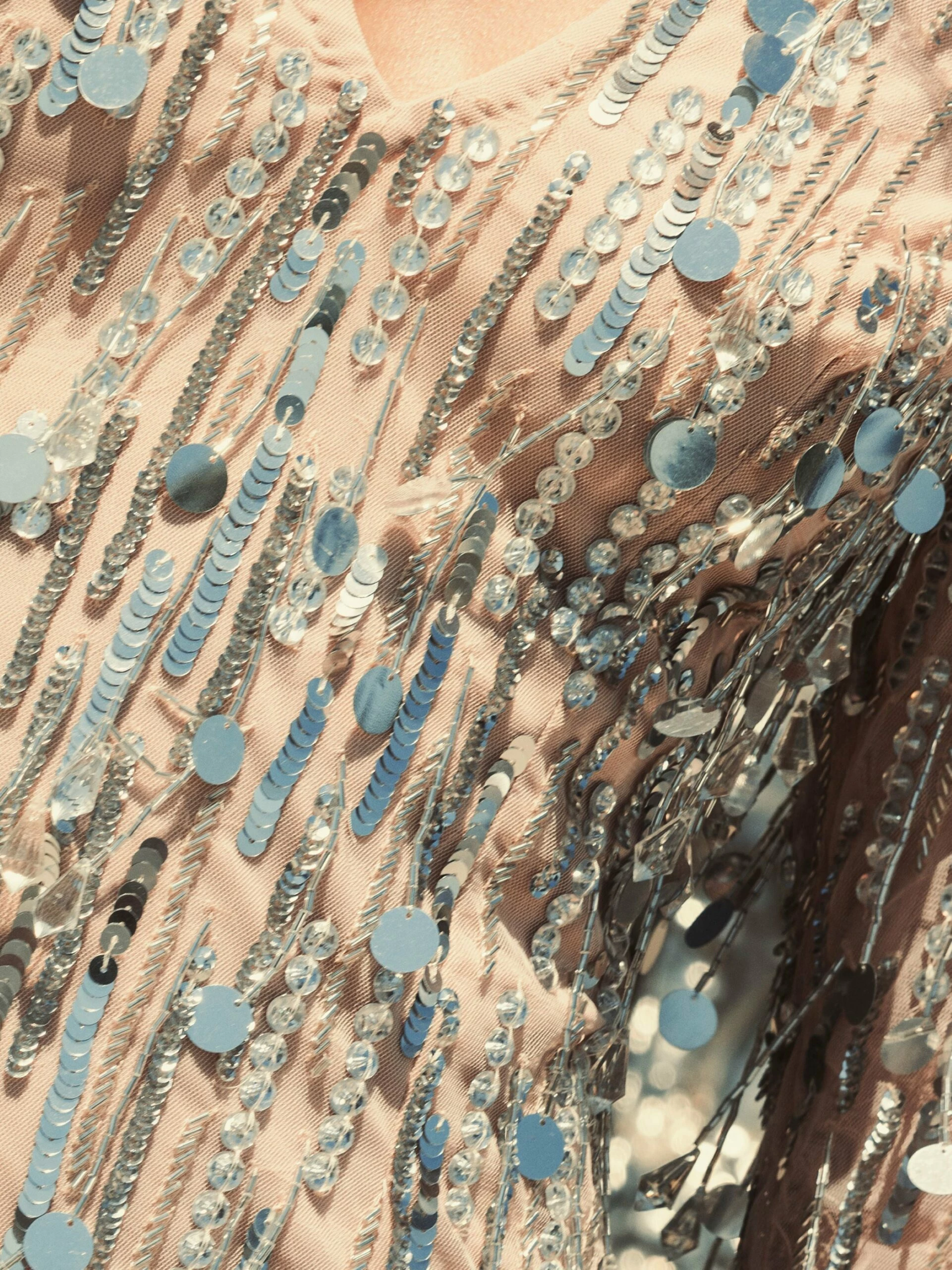 - Hand-beaded Mesh Fabric (100% polyester)