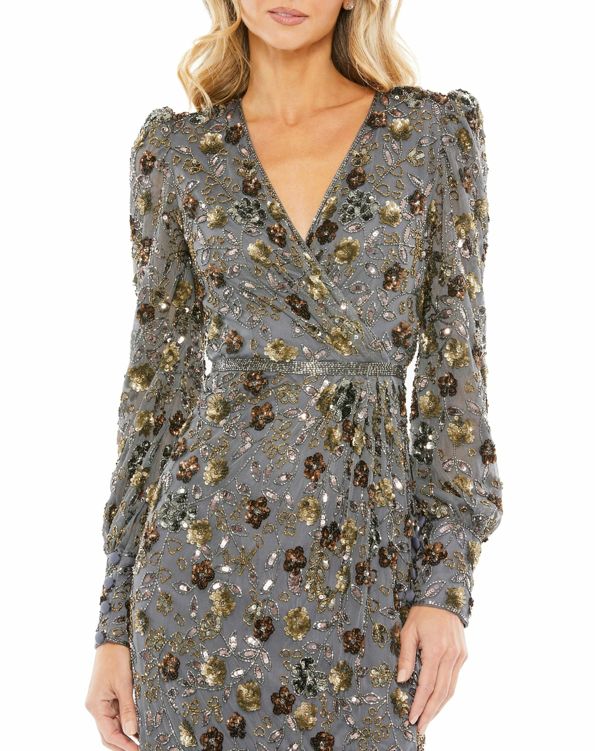 SKU: BWFJZ 7233273659571 Category: Cocktail Dresses Tags: Cocktail, Cocktail Length, Floral, Long Sleeve, Midi, Price 401-500, Sequin, Sequined, Sequins, Slit, V-Neck, V-Neckline