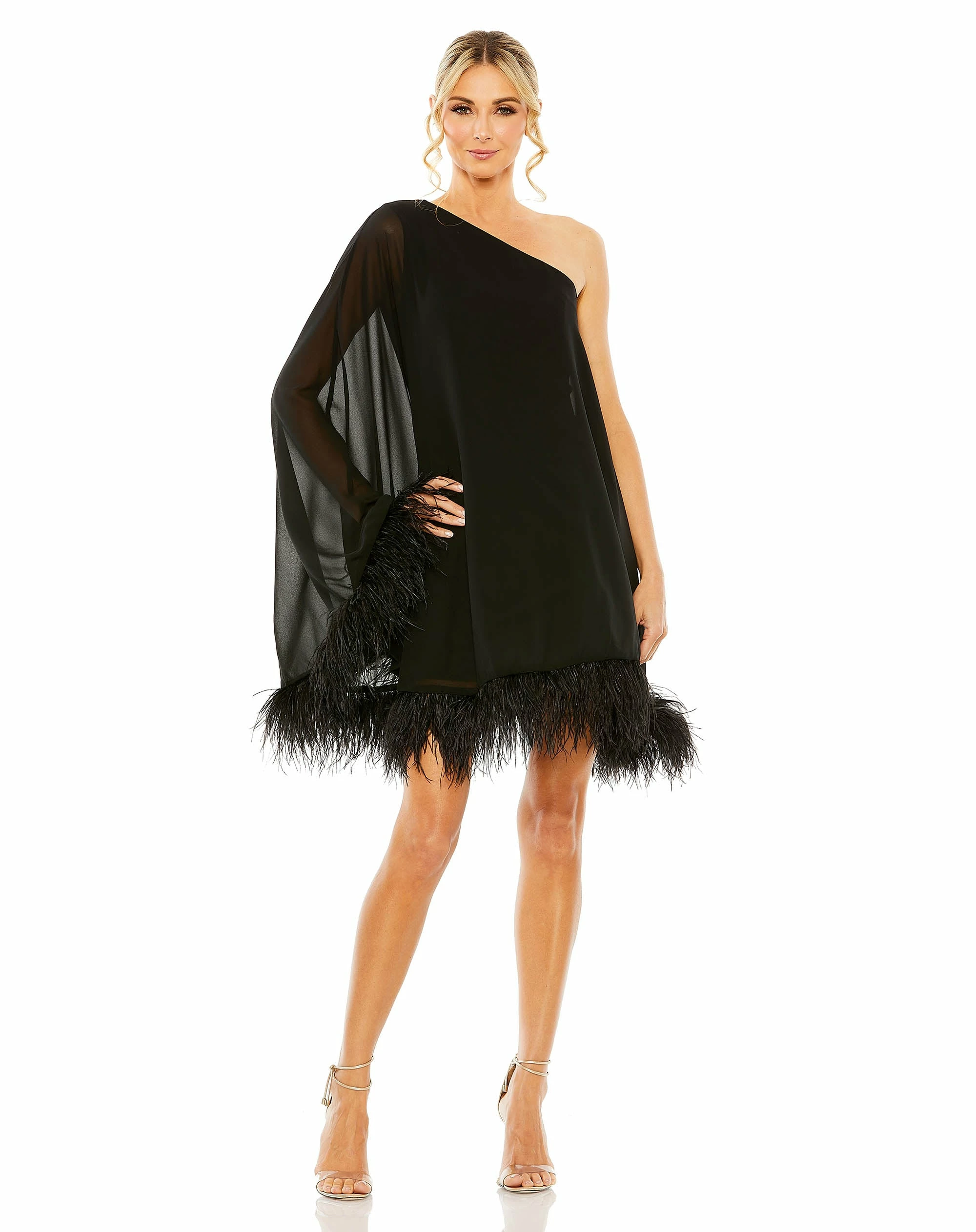 SKU: BWFJZ 7365761630387 Category: Short Dresses Tags: Cape Sleeve, Date Night, Feathers, Homecoming, Mini, Night Out, One Shoulder, Party, Price 401-500, Trapeze, Valentines Day, Wedding Guest