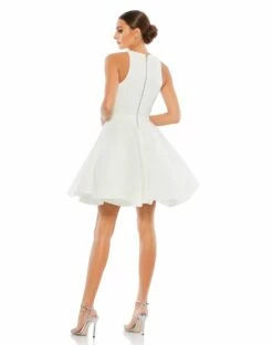 High Neck Sleeveless Sequin Embellished Trapeze A Line Dress
