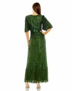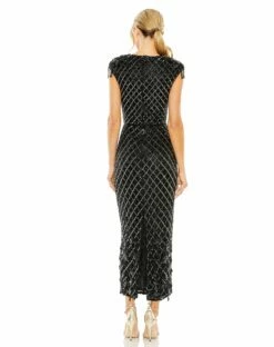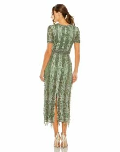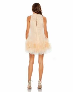 High Neck Sleeveless Sequin Embellished Trapeze A Line Dress