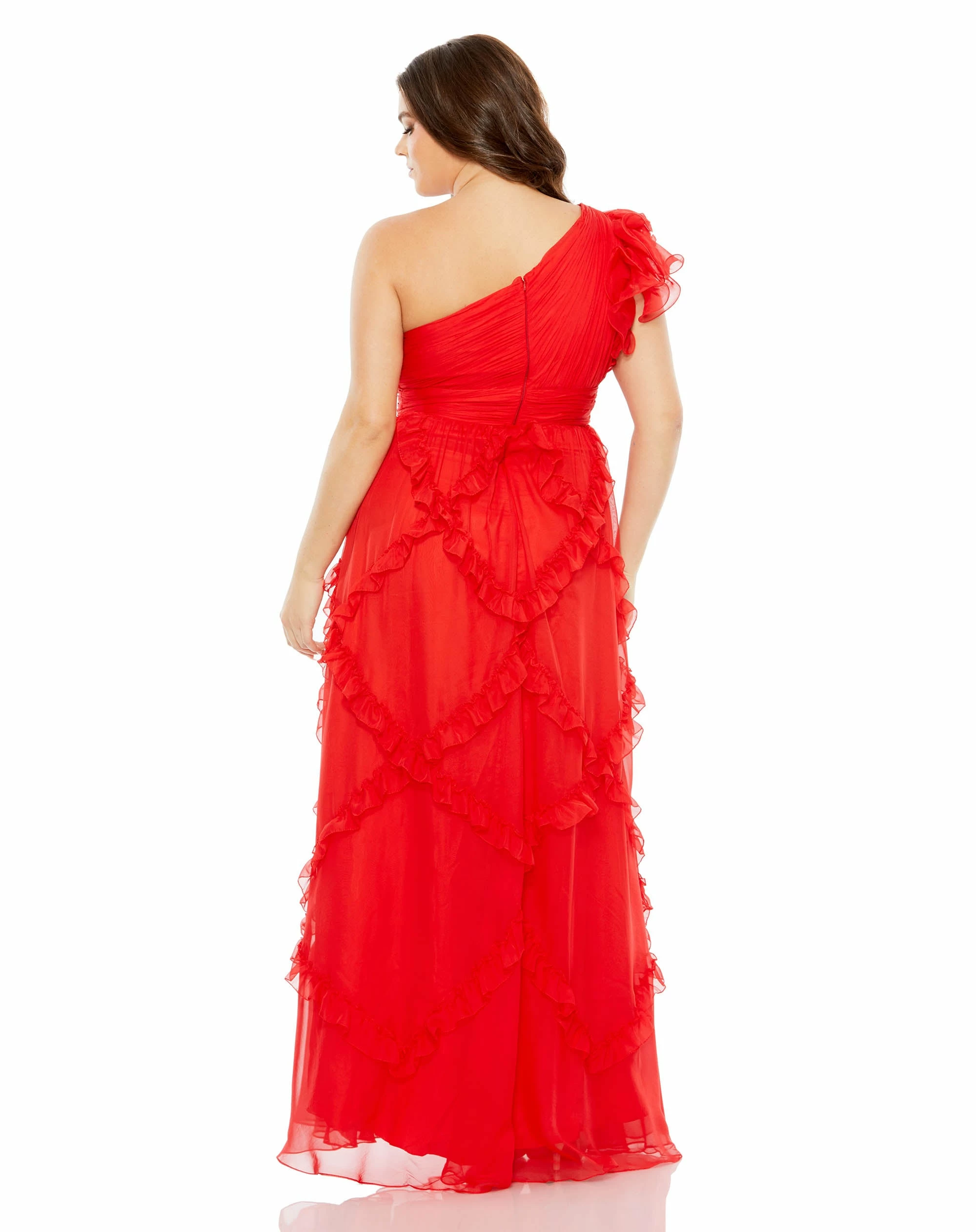 Ruffled One Shoulder Ruched Gown