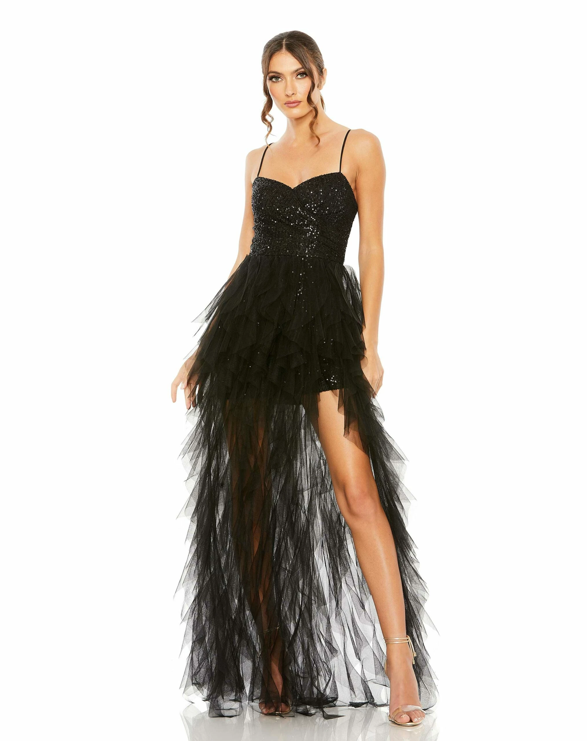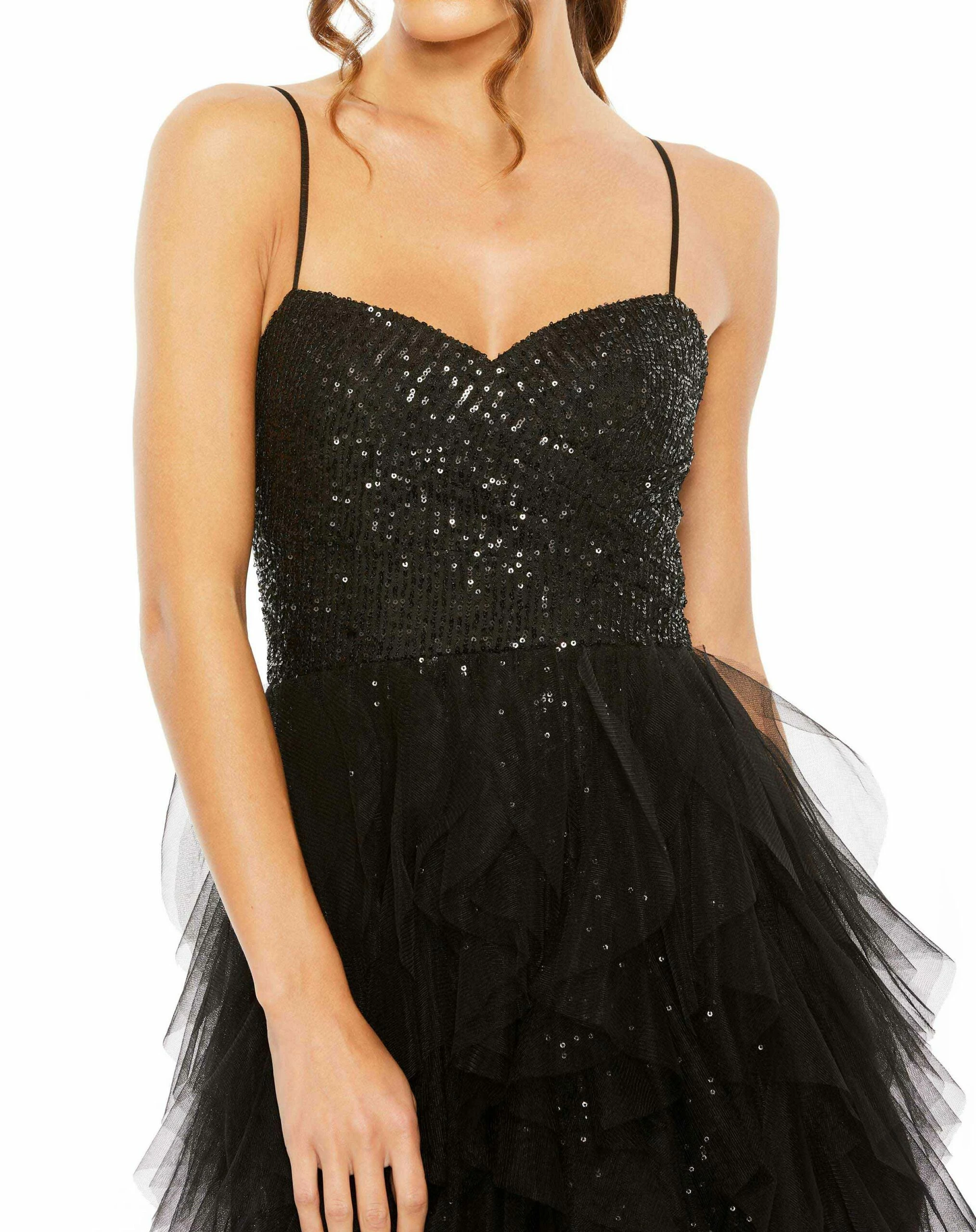 Be the first to review “Sequin Mini With High Low Ruffle Tiered Train” Cancel reply