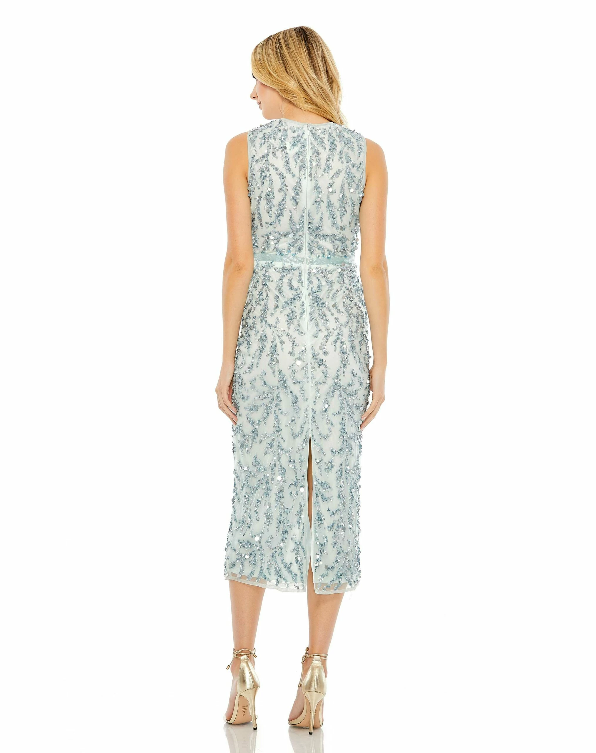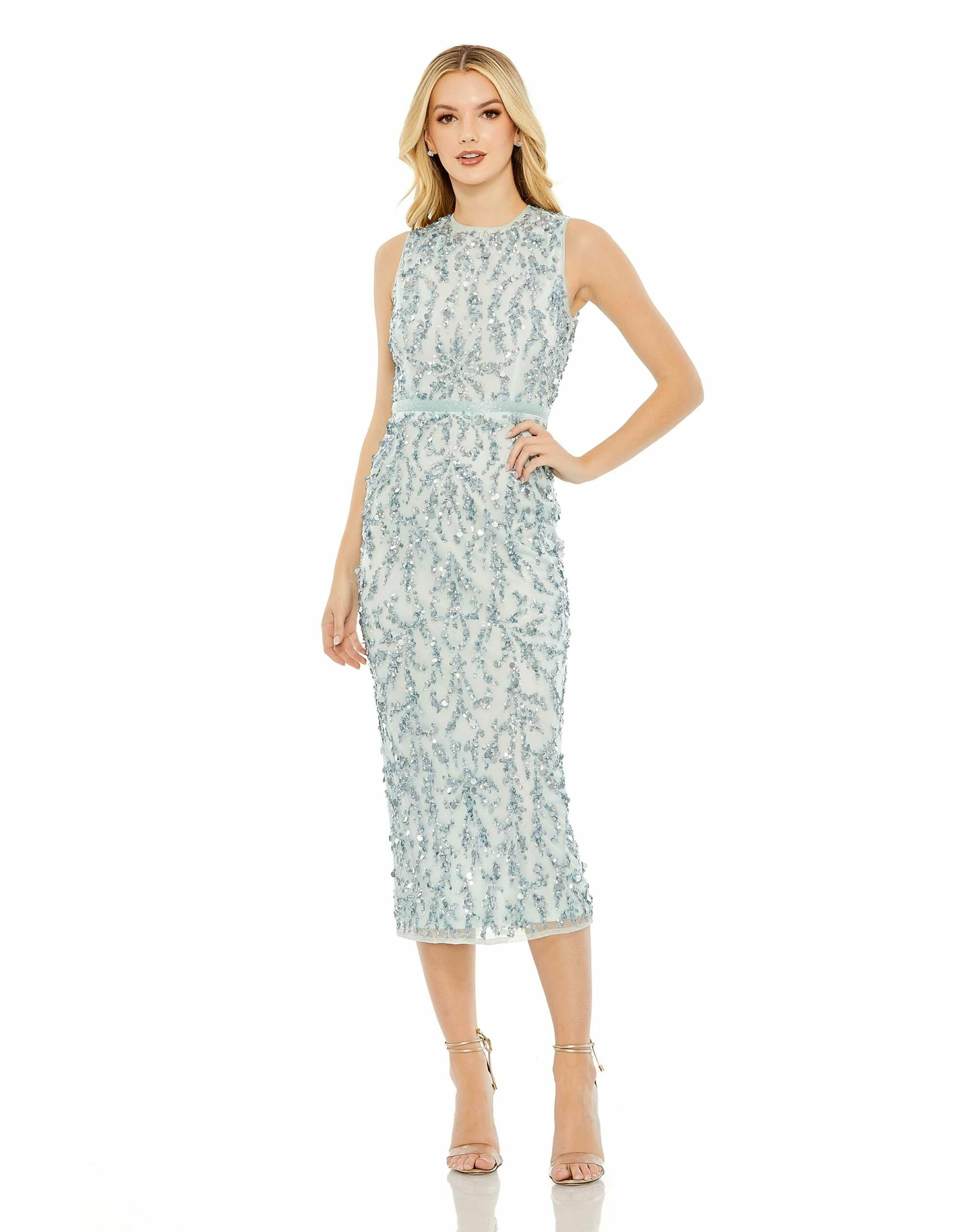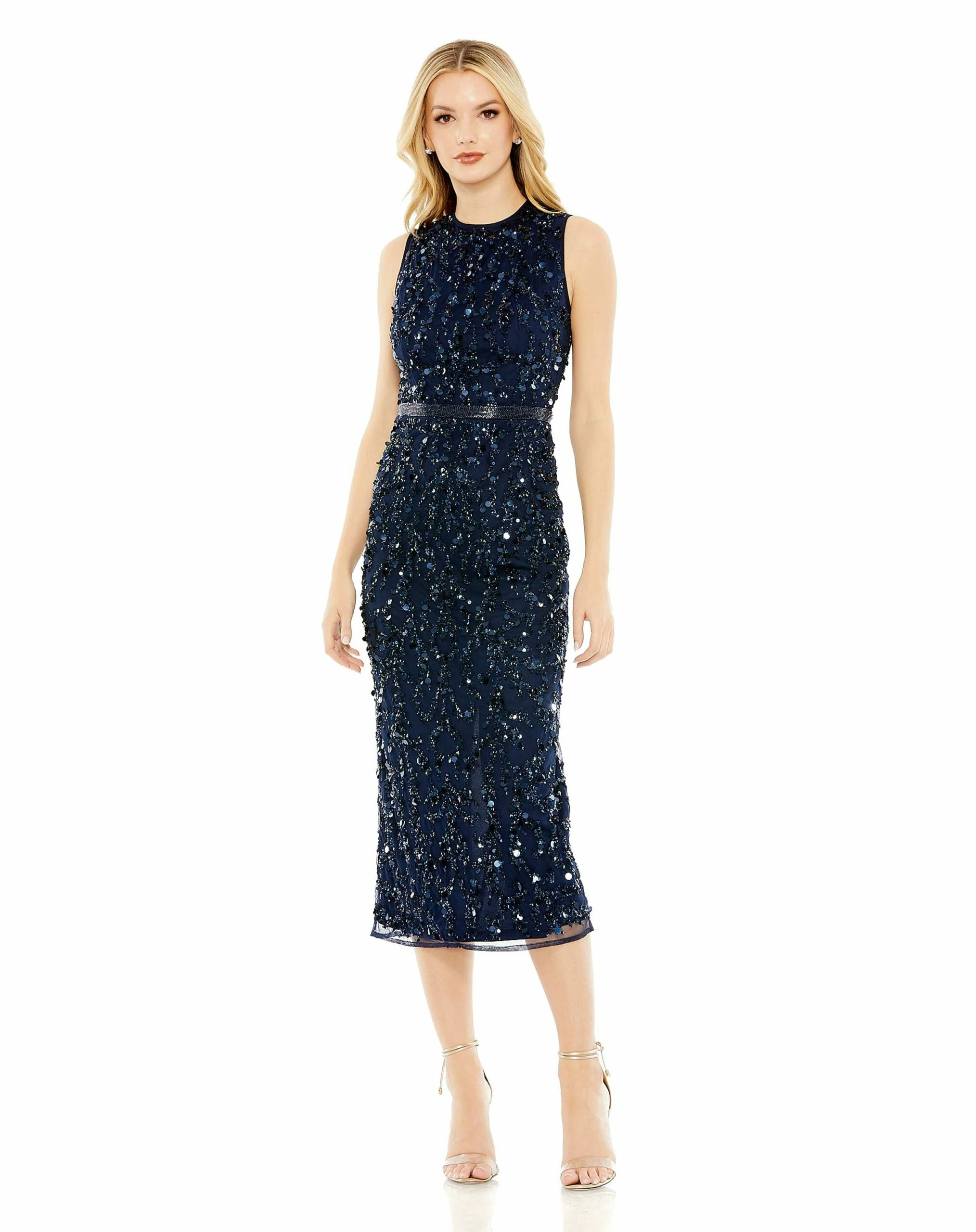 Sequined, High Neck, Sleeveless Sheath Midi Dress