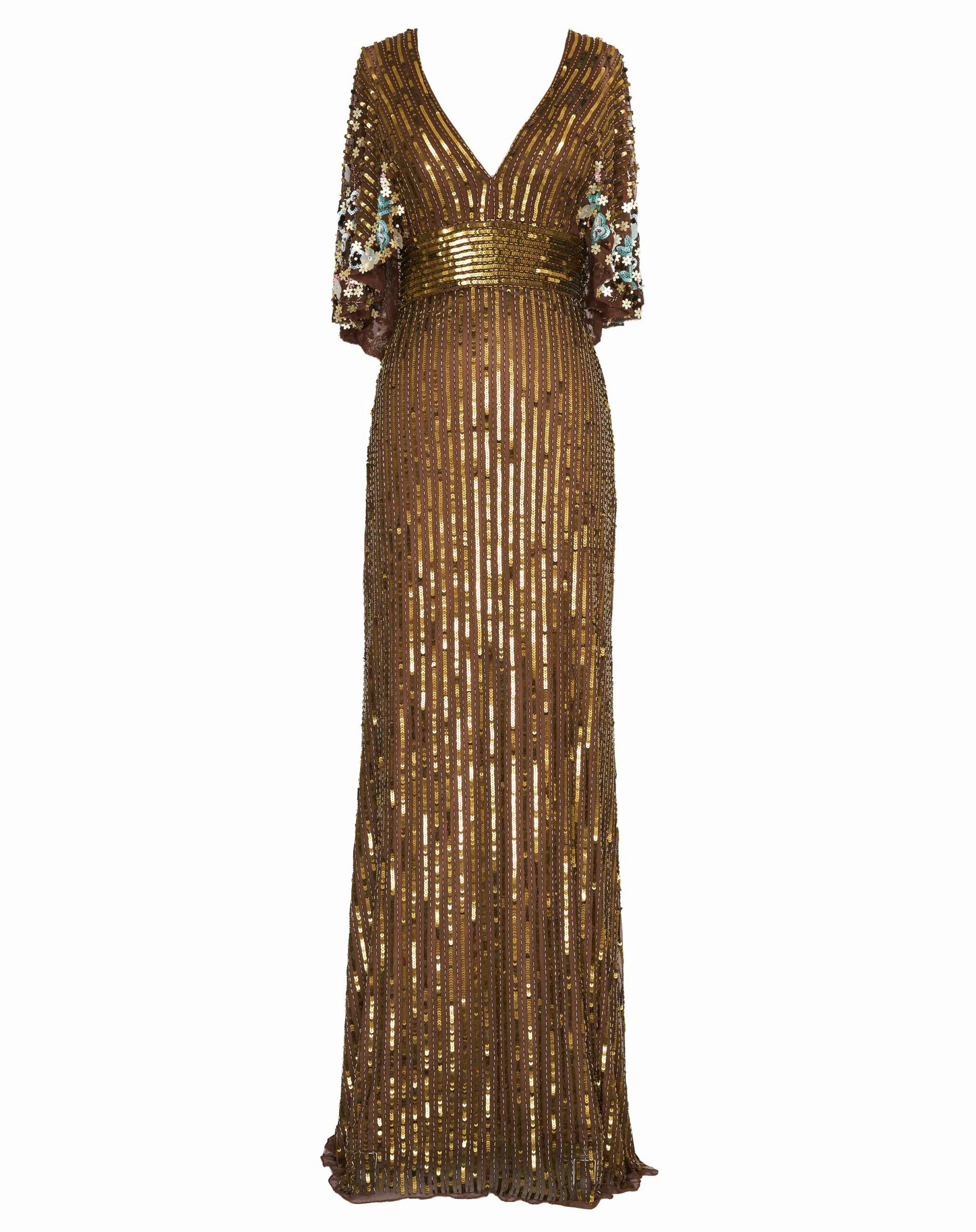 SKU: BWFJZ 7193303023795 Category: Evening Gowns Tags: 20, Beaded, BF25, Cape Sleeve, Evening, Floral, FWWG, Maxi & Floor Length, Neutrals, Price 501-700, Sale, Sequined, Sequins, Short Sleeve, V-Neck, Warm tone