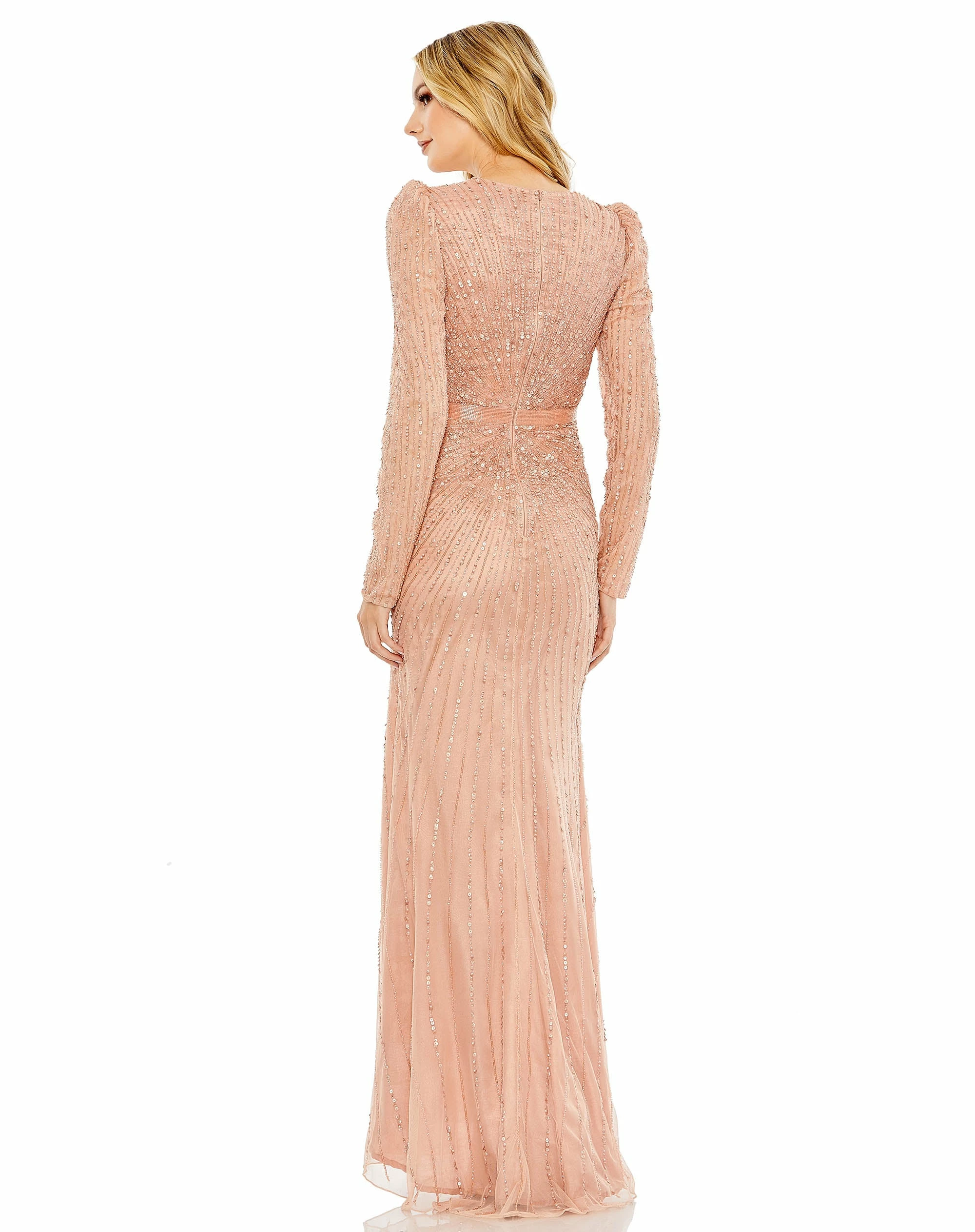 SKU: BWFJZ 7406482882739 Category: Evening Gowns Tags: Beaded, Embellished, Evening, Holiday, Long Sleeve, Maxi & Floor Length, Mesh, Mother of the Bride, Price 401-500, V-Neck, Wrap