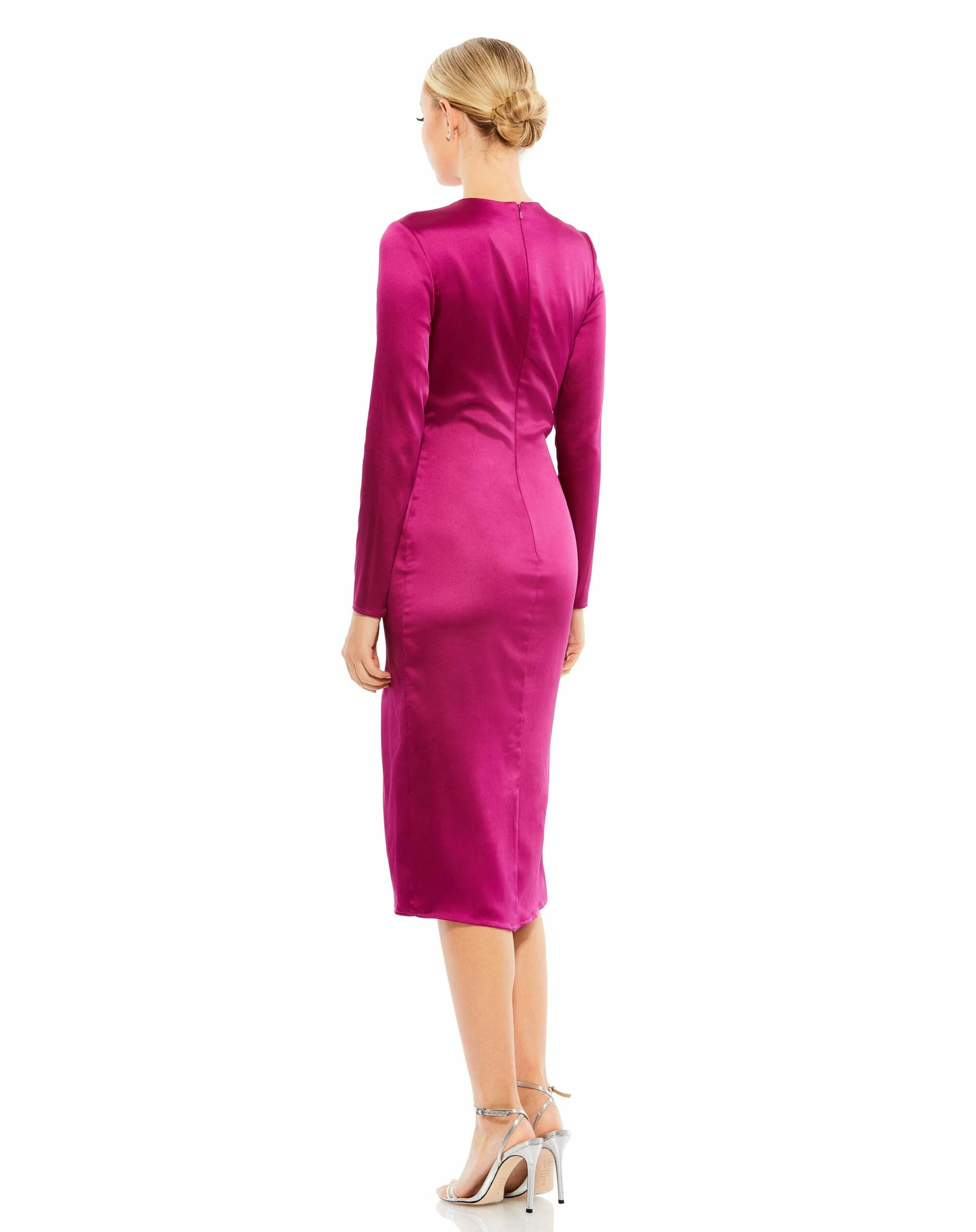 Side Twist Long Sleeve Satin Midi Dress
