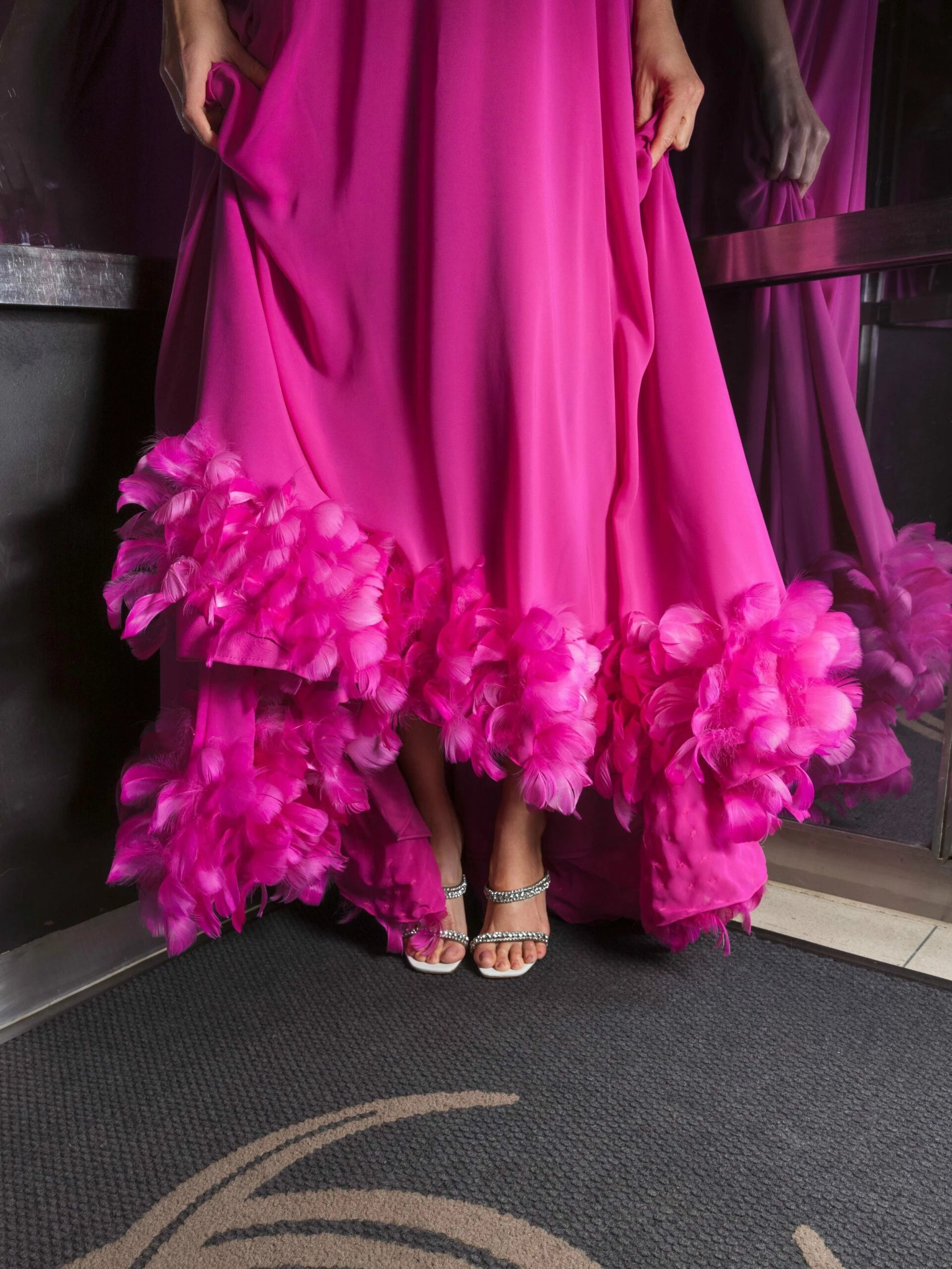 SKU: BWFJZ 7341627703475 Category: Evening Gowns Tags: CROSS, Evening, Feather, Feathers, Hi-Low, High Low, Honeymoon, Maxi & Floor Length, PINK, Price > 700, Prom editorial, Resort, Resort Favorites, Sleeveless, Strapless, Wedding Guest